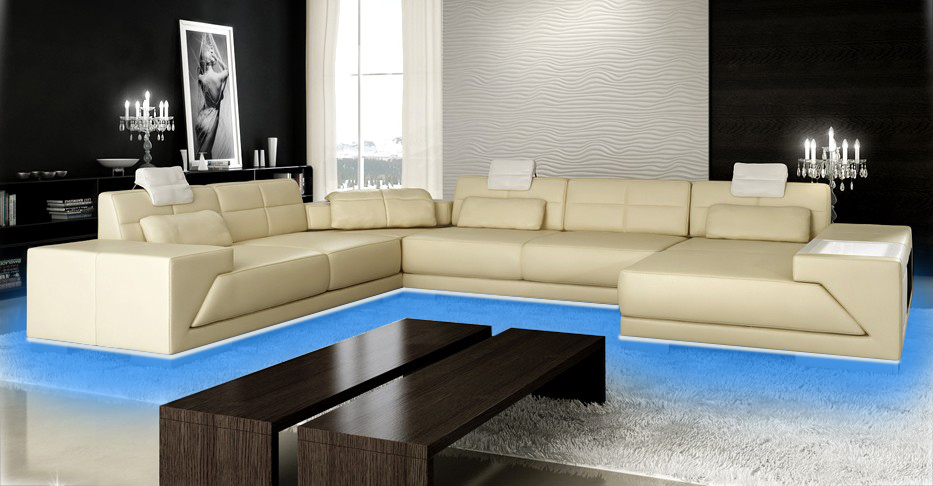 Lieder-Sofa Sofa mat USB Couch Designersofa U-Form Eckgarnitur Polstereck XXL Grouss