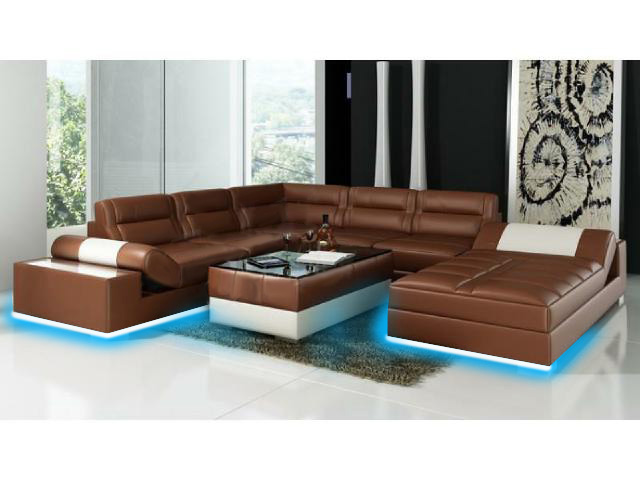 Nieft dem eleganten Design, bitt dësen Canapé en héije Grad un Personaliséierung mat Optiounen wéi elektresch Relax-Foussstützen, déi fir 399 EUR dobäi bestallt kënne ginn, oder eng integréiert Tounsystem (Sound Boxen + USB + Bluetooth System) fir 399 EUR. Dir kënnt och Ären Canapé mat engem Becherhalter Frigo mat Kühlfunktioun ausrüsten. Fir nach méi Atmosphär am Raum ze schafen, ass ënnerbuedem Beliichtung mat Fernsteierung a Faarfwiessel fir 99 EUR disponibel. Duerch d'Benotzung vun italieneschem Rëndslieder a qualitativ héichwäerteger Holzstruktur ass dës Couch net just ästhetesch, mee och beliicht duerch hiren exceptionnelle Komfort a Stabilitéit, ideal fir jiddereen, deen d'Qualitéit an e grandeur Familie- oder Wunnraum sichen.