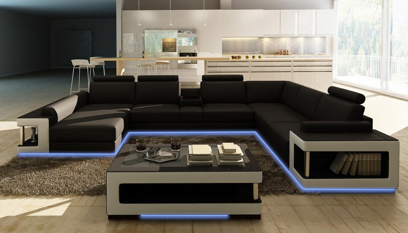 Ledersofa XXL Ecksofa Design Grouss Sofa Couch Polster Eck Sëtz Garnitur
