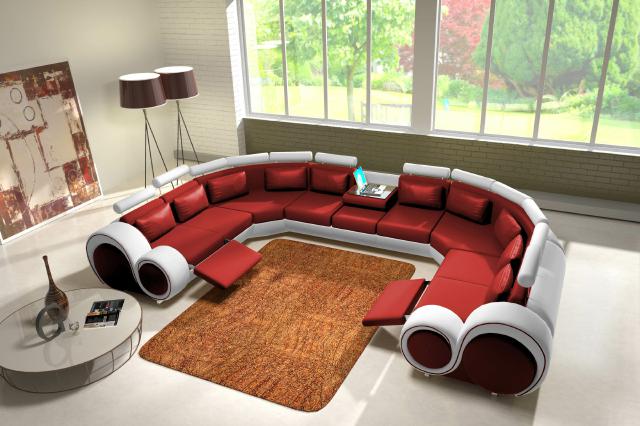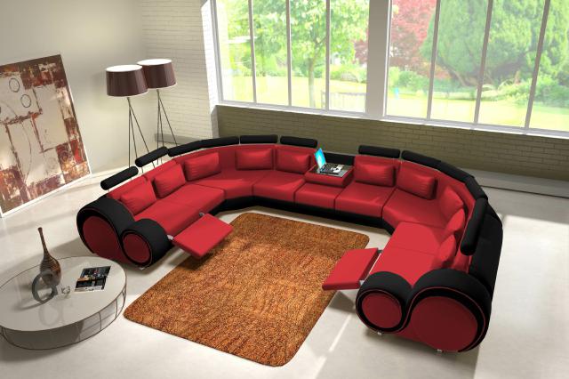 Ledercouch Canapé Couch Wunnlandschaft Lieder Textil Canapé XXL Eckcouch