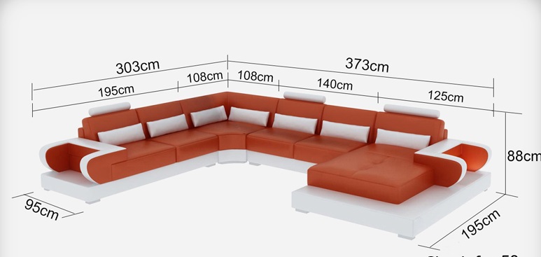 Eck-Couch, Wunnzëimméier, U-förmeg Eck-Couch