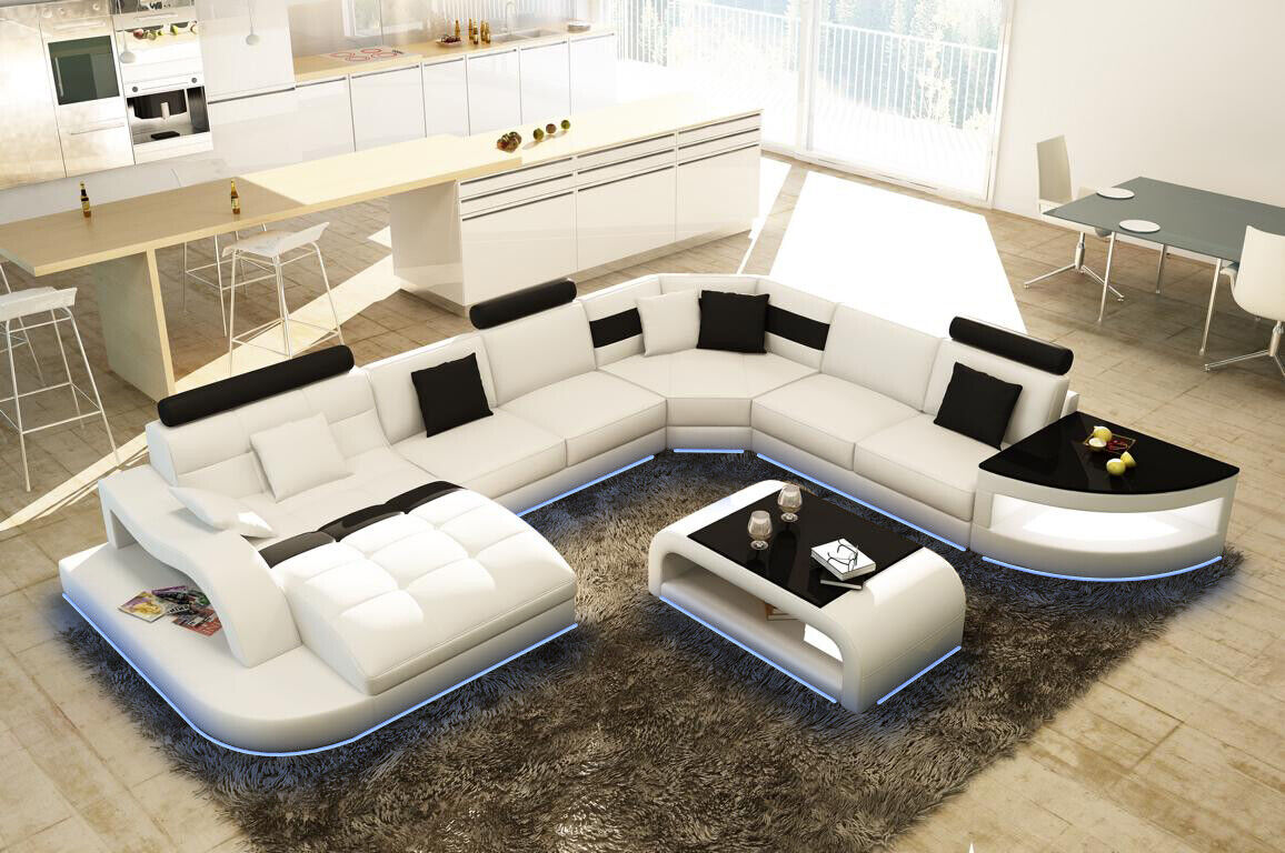 Luxus Designer Ecksofa Ledersofa Canapé Polstersëtzung Wunnlandschaft Lieder