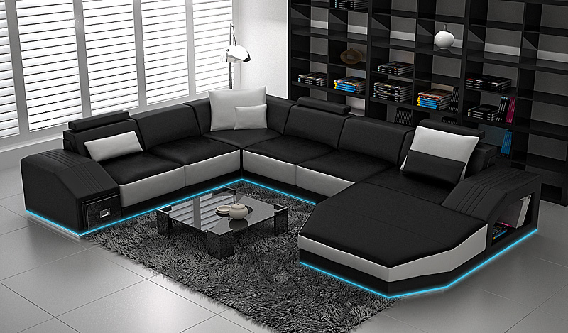 Entdeckt déi luxuriéis an elegant Eckgarnitur Lieder Canapé Wunnzëmmer Polstereck Sëtzgruppen Wunnlandschaft +USB, déi e richtege Bijou an Ärem Wunnzëmmer wäert sinn! Dës Ecksofa ass an zwou Gréisste verfügbar: entweder ca. 194 x 334 cm oder ca. 334 x 194 cm, a bitt sougenannte bëllege méiglech Sëtzoptiounen fir all Raumgréisst. Den Héichpunkt vun der Garnitur ass de Premium Liederfaserstoff, dee mat enger Mëschung vun 70% Lieder an 30% Polyester iwwerzeegt. Fir déi, déi nach méi Exklusivitéit wënschen, steet och e Premium Echtlieder (+399,00 EUR) an eng Optioun mat Premium Vollleder op Ufro zur Verfügung. D’Sëtzflächen sinn aus robustem Federkär, verupaken an engem italienesche Rëndsfell Design, wat e stabile a komfortabele Sëtzversprécht.
