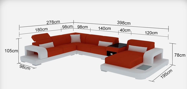 Eckcouch, Wunnzëimmermiwwelen, U-förmeg Eckcouch