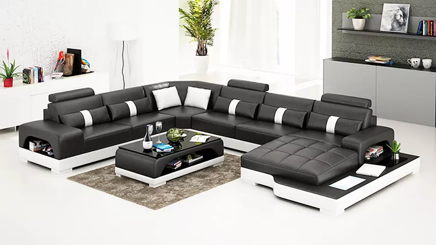 Eckcouch, Wunnzëmmerschmiewel, U-förmeg Eckcouch