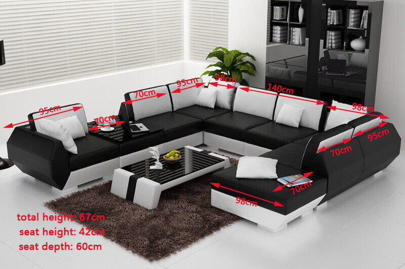 Entdeckt déi Këssen Garnitur Sofas Couchen nei Sofa Couch Wunnlandschaft Eckgarnitur, déi perfekt Léisung fir Äert Wunnzëmmer. Dës stilvoll Couch bitt en impressionante Gesamtmaß vun ongeféier 330 x 336 x 235 cm oder 235 x 336 x 330 cm, sou datt se eng dominant Präsenz a jiddwer Raum huet. Mat enger Sëtzhéicht vun ongeféier 42 cm an enger Sëtzdéift vun 60 cm, suergt dës Garnitur fir optimalen Komfort. De Korpus vun der Couch gëtt duerch en robuste Bannekader aus richtegem Holz gestäerkt, wat fir Langlebegkeet an Ënnerstëtzung suergt. D’Materialwahl enthält Premium Liederfaserstoff, deen zu 70% aus Lieder an zu 30% aus Polyester besteet, fir eng luxuriéis an haltbar Uewerfläch ze garantéieren.