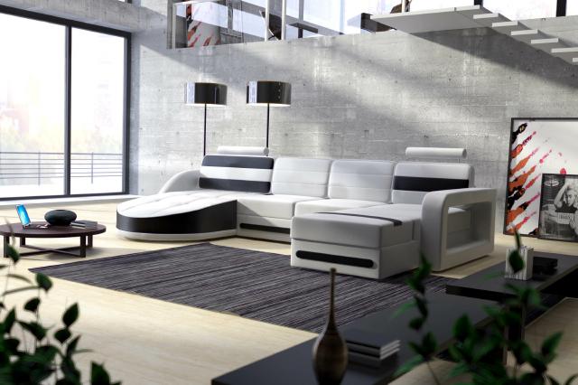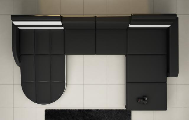 Dëse Sofa mécht net nëmmen en estheteschen Ausdrock, mä bitt och eng Vielfalt u Komfort-Optionen. Dir kënnt den elektresch Relax-Foussstütz oder d'kënschtleger Tounsystem mat Bluetoth Funktionalitéit derbäi wielen, fir en nach méi iwwertreffe Komfort ze assuréieren. Mat enger zousätzlecher Beliichtung funktionéiere Är Owender méi hell a méi atmosphäresch. Ob et fir eng roueg Owender mat engem Buch, oder e Filmowend mat Frënn ass, dës luxuriéis Moosmaach verzaubert sécher Ären Living a bitz en Touch vu Klasse zu Ärem Alldag bäi.