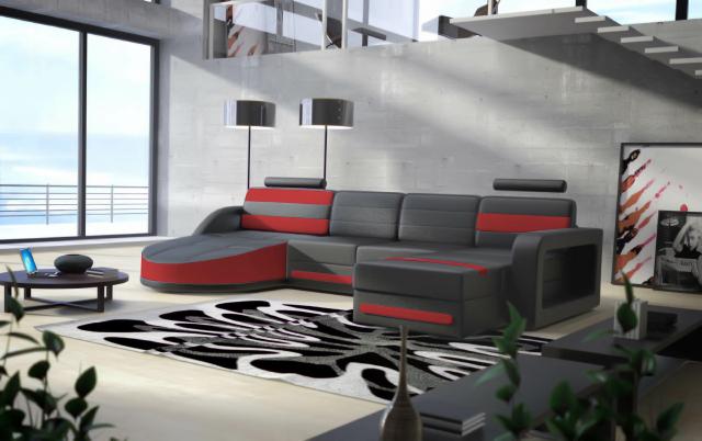 WOHNLANDSCHAFT LEDERSOFA XXL ECKSOFA + USB GARNITUR ECKCOUCH Moosmaach