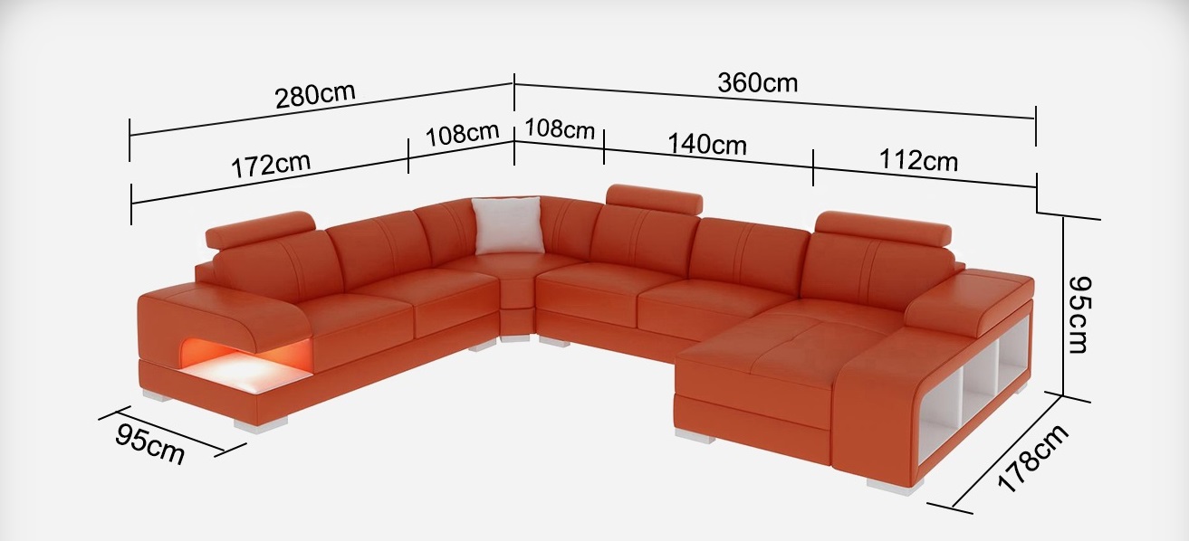 Entdeckt d'Diversitéit vum Wunnzëmmer Canapé Sofa Lieder Polster Eck Sëtz Garnitur U Form Wunnlandschaft +USB, engem aussergewéinlech flexibelen a komfortabele Miwwelstéck fir Äert Heem. Des luxuriéis Sofa-Garnitur ass an engem stilvolle U-Form entworf, mat Maßen vun ca. 280 x 360 x 178 cm, wat se ideal mécht fir grouss Wunnzëmmer. D'Héicht vun ca. 95 cm an d'Sëtz Héicht vun ca. 42 cm bidden en optimalen Komfort. Dësen Sofa kënnt a verschiddene Faarwen, déi iwwer de Reiter "Faarwen" ugewise ginn, mat engem héichqualitativen Premium Liederfaserstoff, deen aus 70% Lieder an 30% Polyester besteet. Mir bidden Iech och d'Méiglechkeet vun engem Upgrade op Premium Echtlieder oder Premium Vollleder. Mat agebauten USB-Klickautomatik (3-fach Stecker), ass Äre Komfort komplett.