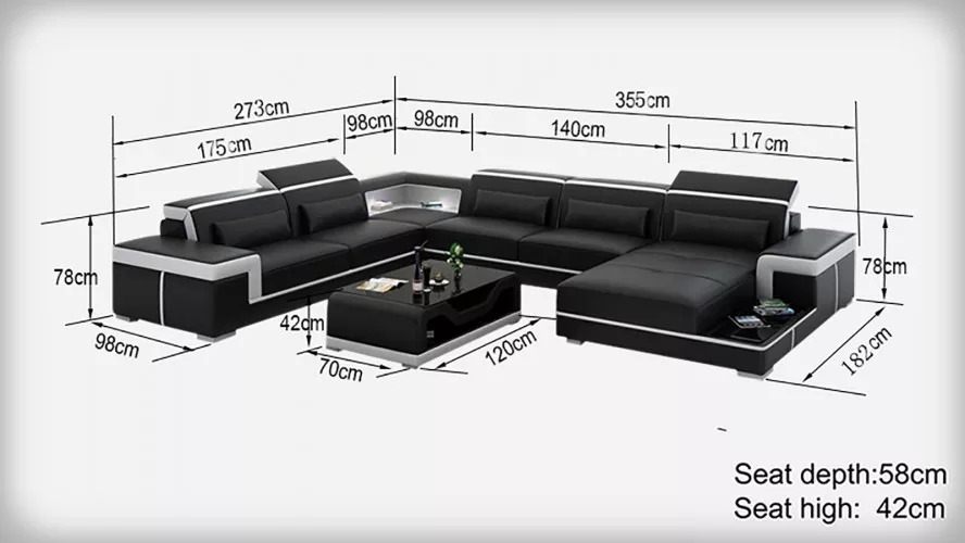 Dës Couch ass net nëmme schéin, mä och praktesch, dank hirer erhuelsamer Sëtzhéicht vun ca. 42 cm an enger Sëtzdéift vun ca. 58 cm, perfekt fir déi optimal Entspanung no engem laangen Dag. D'U-sektioun erflaacht d'Kombinatioun mat anere Miwwelen, an hir adaptabel Optiounen wéi Premium Echtlieder oder Premium Textilstoff, déi op Ufro verfügbar sinn, erlaben Iech dës Couch un all spezifesch Bedierfnesser unzepassen. Ideal fir Groussfamilljenzesummenkeeten, Reuniounen oder einfach fir an der roueger Ambiance vun Ärem Wohnzimmer ze relaxen, setzt dësen Eckcouch den neie Standard fir modern a komfortabel Wunnzëmmerwanne.