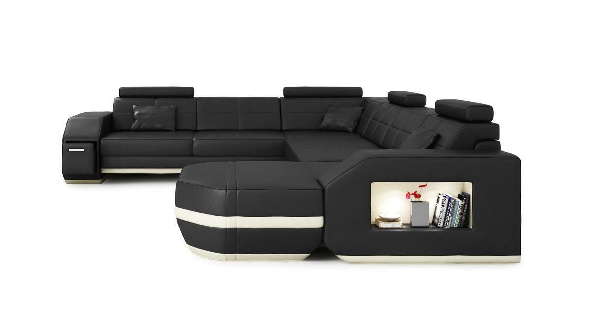 Dëse luxuriéise Sofa ass ideal fir gemittlech Owesstonnen mat Frënn oder der Famill, a kann einfach zum Zentrum vun Ärem Wunnzëmmer ginn. Fir déi, déi Wert op Qualitéit leeën, ass d'Optioun vu italieneschem Rëndslieder mat enger Dicke bis zu 2,50 mm eng besonnesch attraktiv Wahl. Mat sengen universellen Design an héijer Funktionalitéit, ass den 'Ecksofa Liederkanapé Grouss XXL U-Form Wunnlandschaft Sofa Canapé Dekor Garnitur' perfekt gëeegent fir gemittlech Filmowender, Liesstonnen oder einfach fir sech z'entspanen. Entdeckt d'Villsäitegkeet an den aussergewéinleche Komfort dee dëst Mëbbelstéck bidd an erlieft Luxusbannenariichtung op hirem Héichpunkt.
