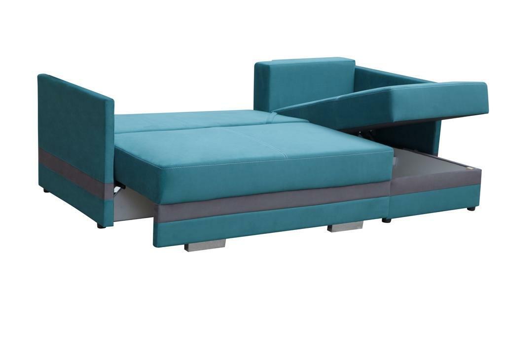 Ecksofa mat Schlofplaz Bettfunktioun Këscht Bett Sofa Wunnlandschaft
