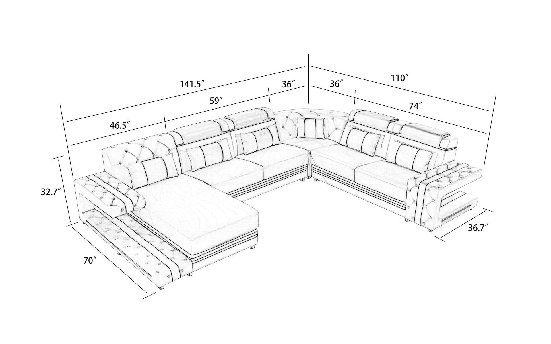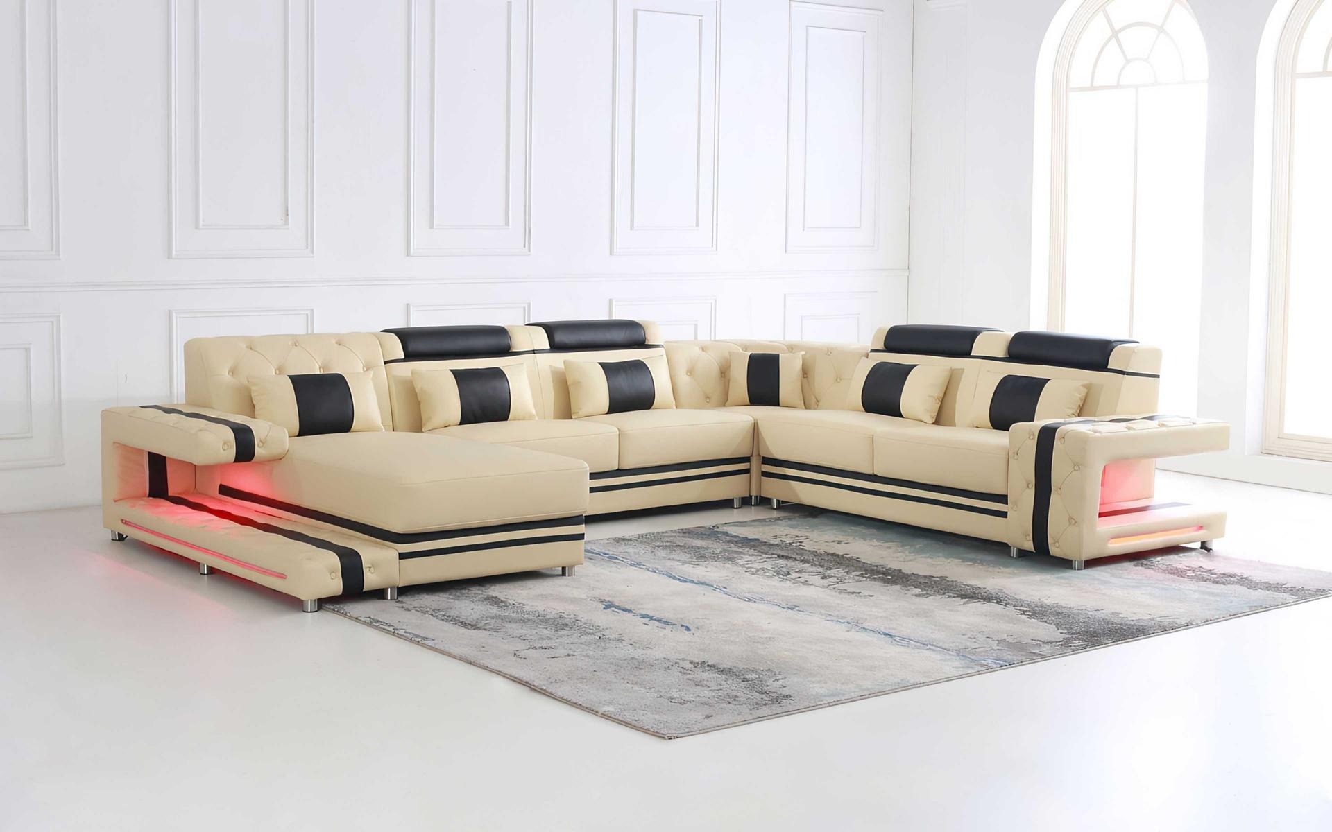 Liederpolster Sëtz Design Modern Eck Garnitur Sofa Wunnlandschaft U Form USB LED