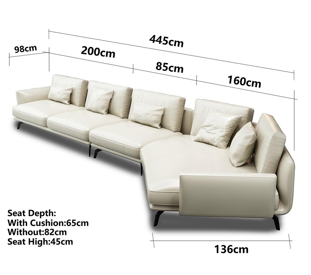 Entdeckt den ultimativen Luxus an Ärem Wunnzëmmer mat der Liederpolster Design Eckcouch Sofa L-Form Wunnlandschaft Wunnzëmmer. Dës prächteg Eckcouch kombinéiert funktionell Design mat héichwäertegem Material, wat et ideal mécht fir stilvoll an komfortabel Ënnergäng an Ärem Heem. Mat enger beandrockender Längt vu 445 x 136 cm oder ëmgedréint, ass dës Couch grouss genuch fir déi ganz Famill an all Är Gäscht. D'Sëtzhéicht vun ca. 45 cm an d'Sëtztiefe vun 58 cm garantéieren optimal Sëtzkomfort, wärend déi verstellbar Héicht vun ca. 80/100 cm individuell Adaptatioun erméiglecht. Dir hutt komplett Fräiheet an der Faarfwahl, an et steet Iech eng Auswiel un Materialien zur Verfügung, vu Premium Lederfaserstoff bis hin zu Premium Vollleder - ideal fir all Interieurfaarwen unzepassen.