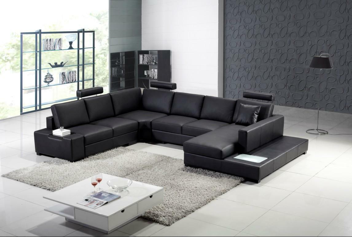 Ledersofadesigner Sofa U-Form Wunnlandschaft Canapé Dekoratioun Këssen Eckssofa