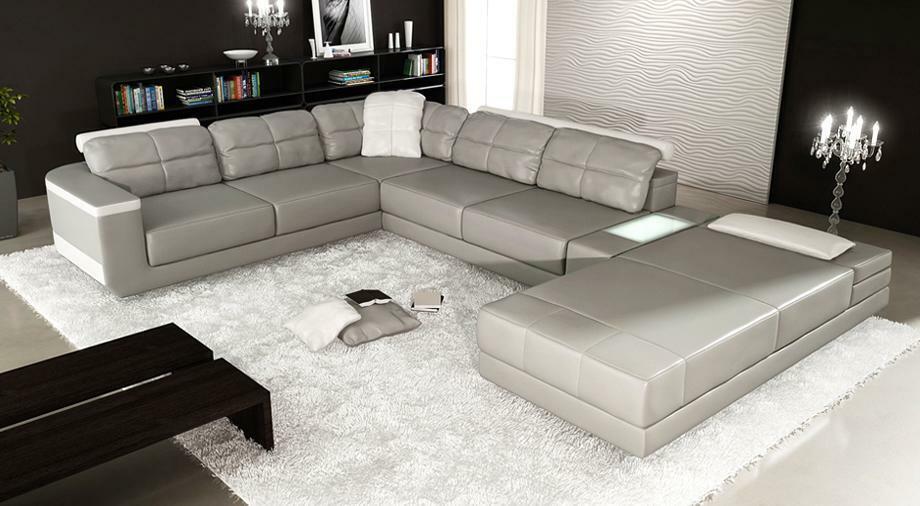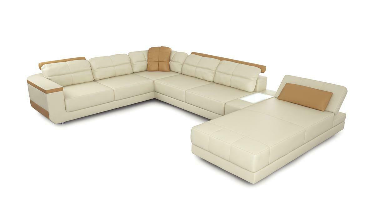 Ledercouch op Mooss gemaach Eckcouch Couch Polstersëtz Garnitur Wunnlandschaft