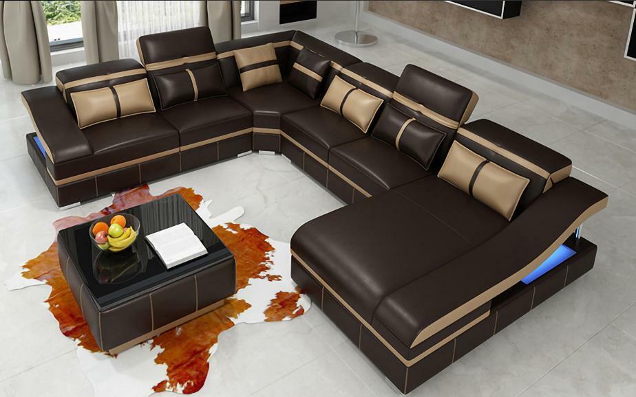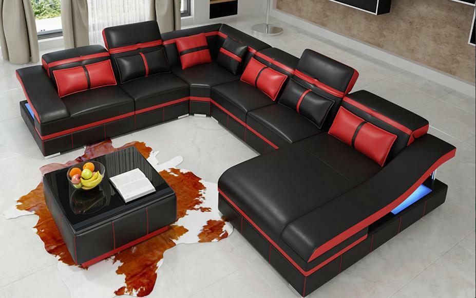 Luxus Eck Ecksofa U-Form Wohnlandschaft Sofa Canapé Stoff Garnitur Modern Sofas Nei