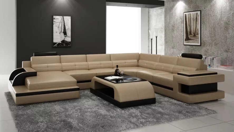 Entdeckt déi elegant an funktionell "Modern Wunnzëmmer Design Ecksofa Miwwelen Eckcouch Liederpolster Couch", déi perfekt ass, fir e luxuriéise Touch an äert Heem ze bréngen. Dës Ecksofa ass an enger U-Form designéiert, wat net nëmmen e stilvollen Ustrahl huet, mee och vill Sëtzplaz ubitt. Mat enger Dimensioun vun **309 x 384 x 185 cm** oder **185 x 384 x 309 cm**, erfëllt dës Sofa Är Besoinen an der Modulerbarkeet. D'Auswiel vun engem **Premium Liederfaserstoff**, deen aus 70% Lieder an 30% Polyester besteet, garantéiert eng haltbar an komfortabel Sëtzfläch. Fir déi, déi nach méi Luxus sichen, sinn Optiounen wéi **Echtlieder** oder **Volllieder** géint Oppräis verfügbar, wat eng weider Personaliséierung erméiglecht.