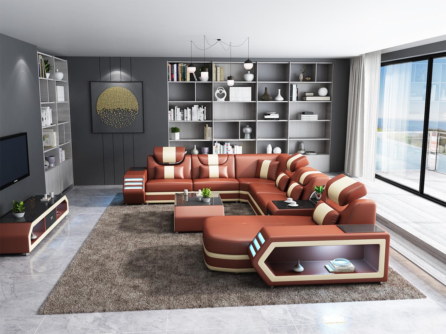 Dank senge raffinéiert Optiounen ass dëst Ecksofa ideal fir déi, déi hir Wunneng an eng luxuriéis Entspanungsoas transforméiere wëllen. Dir kënnt dat exzellent elektresch Relax-Foussstütztmodul integréieren, oder en pakt Bluesound Soundsystem, deen Iech eng onvergiesslech akustesch Erfahrung bidd. Fir déi richteg Ambiance ze kreéieren, kënnt Dir d’onderbueden Beleuchtung mat Fernsteierung a Faarfwiessel bäifügen. Dës Fonctiounen maachen den Ecksofa perfekt fir béid, gemittlech Filmowender an elegant Empfangsknäppcher doheem. Ob Dir no engem spezielle Panzëmmer oder engem zentrale Stéck sichs, dësen Ecksofa passt séiss an all modernen Interieur. Mat dëser Eckgarnitur kritt Dir net nëmmen e funktionnelt Miwwelstéck, mee en Highlight vun de Wäerter vum Innovatioun an Design.