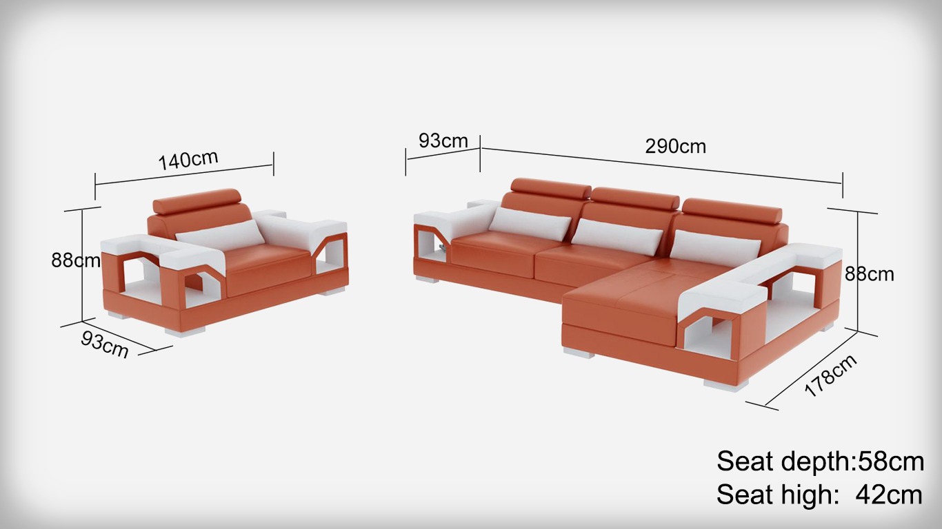 Entdeckt d'luxuriéis Wunnlandschaft Ecksofa L Form Fauteuil Set Garnitur Modern Sofa Lieder Couch Nei, déi exzellent Komfort mat modernen Design kombinéiert. Dës Ecksofa ass a verschiddene Gréissteen disponibel, entweder ca. 290 x 178 cm oder ca. 178 x 290 cm, an erlaabt Iech Är Wunnraum optimal auszenotzen. Mat enger Héicht vu ca. 88 cm a Sëtz Héicht vun 42 cm bitt des Sofa eng bequem dezent Héicht fir all Dag Entspanung. D'Sëtzdéift vun ca. 58 cm suergt dofir, datt Dir gemittlech zréckleene kënnt. D'Méiglechkeet eng Faarf fräi ze wielen an d'Benotzung vu Premium Liederfaserstoff garantéiert, datt dëst Stéck sech perfekt an Ären Interieur integréiert. Dräi USB Porten bidden extra Komfort fir Äert technescht Equipement ëmmer geluede ze halen.