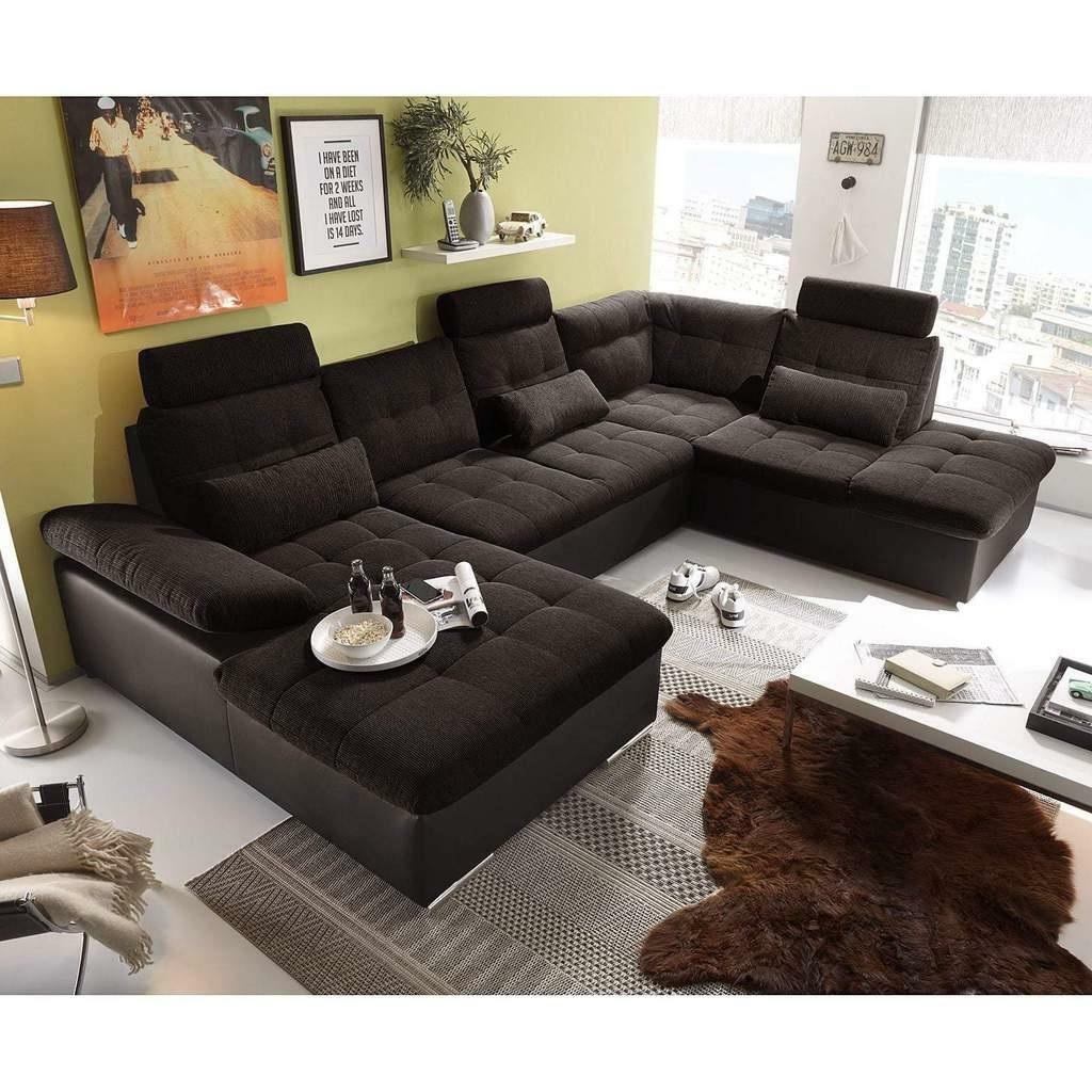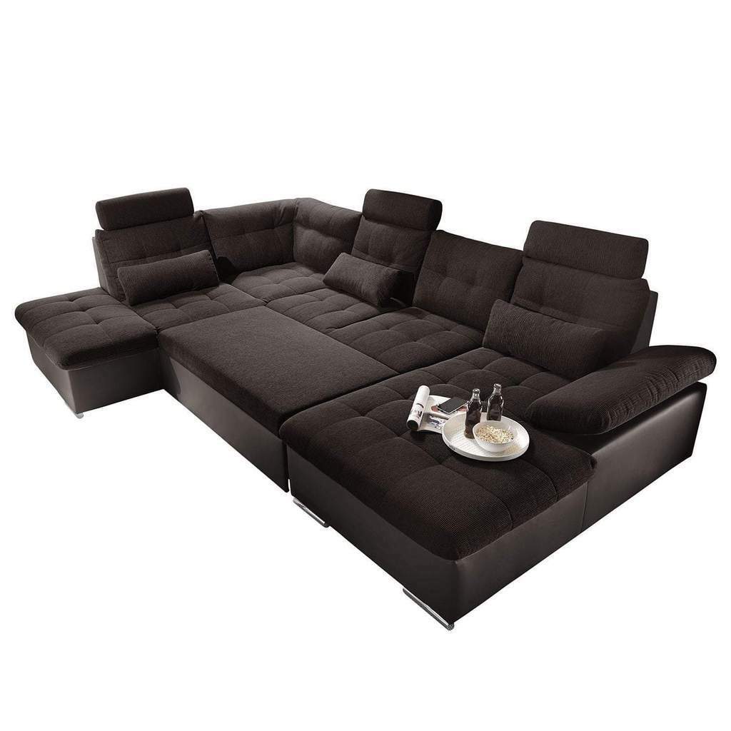 Wunnlandschaft Multifunktioun Canapé Ecksofa U-Form Bettfunktioun Schlof