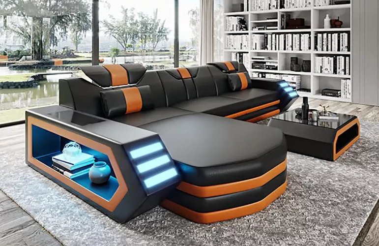 De Sofa kann a verschiddene Materialoptioune bestellt ginn, dorënner Premium Liederfaserstoff (ouni zousazkäschten), Premium Echtlieder, Premium Textilstoff, oder Premium Vollleder. Dës Optiounen erméiglechen et Iech, de Sofa perfekt op Äre Stil unzepassen. D'Kontaktflächen sinn aus héichqualitativem italieneschen Rëndsfleder gemaach, an d'Innenstruktur besteet aus echt Holz, wat béid Qualitéit a Langlebegkeet garantéiert. Entdeckt déi verschidden Notzungszenee wéi et perfekt ass fir e klengt Familjetreffen, e relaxe Filmowend oder einfach ze entspanen no engem laangen Dag.