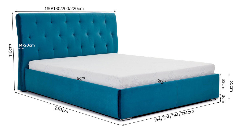 Dëst luxuriéis Bett ass net nëmme funktionell, mä och ee Stéck Konscht, dat Äert Heem verschéinert. Ideal fir Hoteller oder privat Schlofzëmmer, d'Samett Textur bitt en zaarten a gemittleche Look, deen all Visiteur beandrockt. Fir déi, déi e bësse Glamour sichen, bidde mir d'Méiglechkeet, d'Knäppercher duerch Kristallsteng auswäertze kënnen – vun einfache bis hin zu echten Swarovski Kristallen fir en opulenten Touch. D'Innengestell ass aus echtem Holz gemaach, wat net nëmme Robustheet, mä och eng laang Jore genéissbar Benotzung garantéiert. Dëst ass méi wéi nëmmen e Bett – et ass eng Investitioun an Äert Wuelbefannen a Stil a sengem beschten Format.