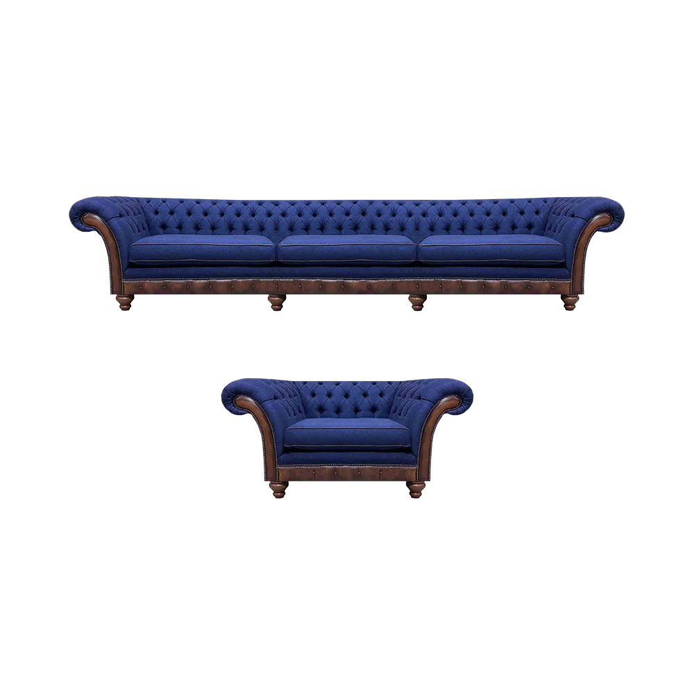 Blo Chesterfield Polstermöbler Designer 3-Sëtzer Sofa Stoffvitrinn 2-Deeler