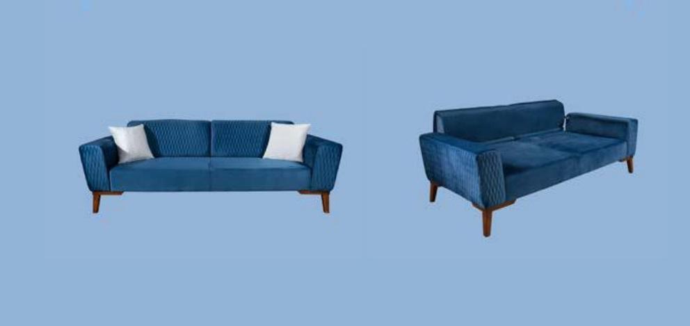 Blo Drei-Sëtzer Canapé Canapé Sofa Elegant Sëtzmiwwel Sofa Wunnzëmmer Neie Samt