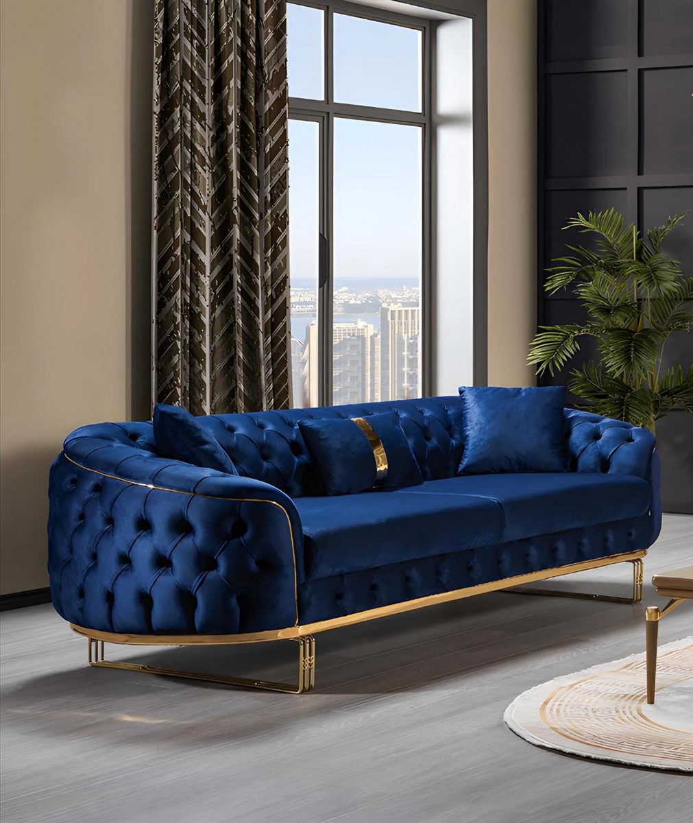 Dëse stilvollen Drësëtzer passt perfekt an all Wunnzëmmerambiance a gëtt e Markenzeechen fir stilvoll Wunntrenn. Virstellen Iech, Entspanung beim Liesbuch oder e Filmowend mam Familiekrees, dëst Sofa gëtt zum ideal Begleeder fir all Moment. Seng beandrockend blo Faarf ass net nëmmen en Aenfänger, mee och eng exzellent Basis fir d’Kombinatioun mat anere Miwwelstécker oder Accessoiren. Ob eleng fir de genossene Roumout oder als Mëttelpunkt vun enger dynamescher Ënnerhalung, dëst Sofa mécht all Interieur perfekt! Gönnt Iech dëse spezielle Moment vum Luxus a Konscht a verännert Äert Liewensraum.