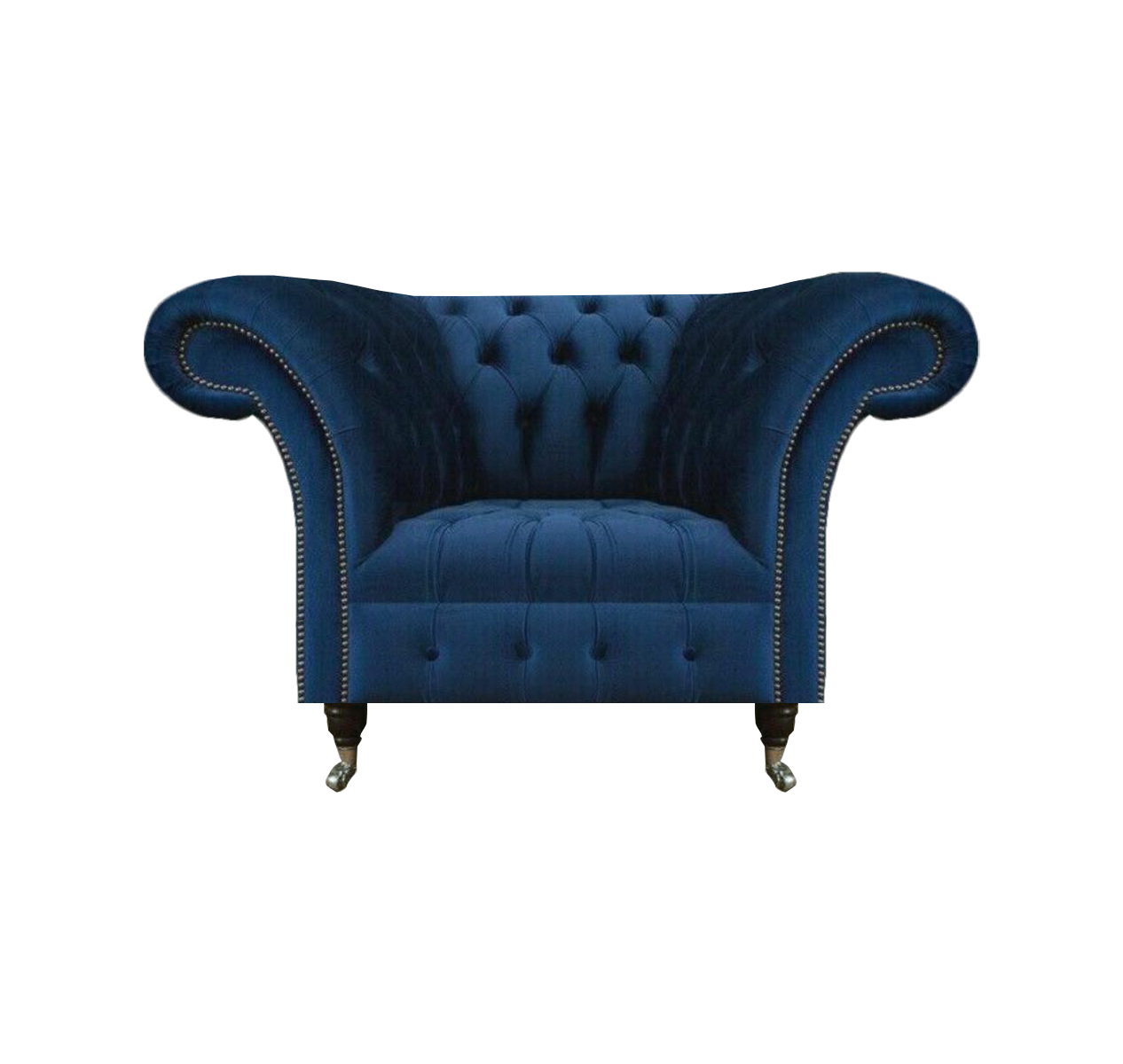 De Bloen Chesterfield Einsëtzeger Wohnzimmer Still Polster Modern Miwwelen ass dat ideal Miwwelstéck, fir Ärem Wunnzëmmer en Touch vu Luxus an Eleganz ze ginn. Mat senge großzügéise Moossen vun ongeféier 130 x 90 x 80 cm bitt en genuch Plaz fir eng entspaant Sëtzerfarung. D'Sëtzhéicht vun ongeféier 42 cm an d'Sëtzdéift vun ongeféier 52 cm suergen fir optimalen Komfort. D'kombinatioun aus héichwäertegem Holz an Textilpolsterung garantéiert en stilvollen Look an eng laang Liewensdauer. Déi zäitlos blo Faarf füügt en eleganten Touch zu Ärem Raum bäi a passt perfekt bei eng Villzuel vun Ariichtungsstiler. Schaaft eng harmonesch Atmosphär andeems Dir de Fauteuil mat engem passenden 4-Sëtzer, 3-Sëtzer oder 2-Sëtzer kombinéiert.