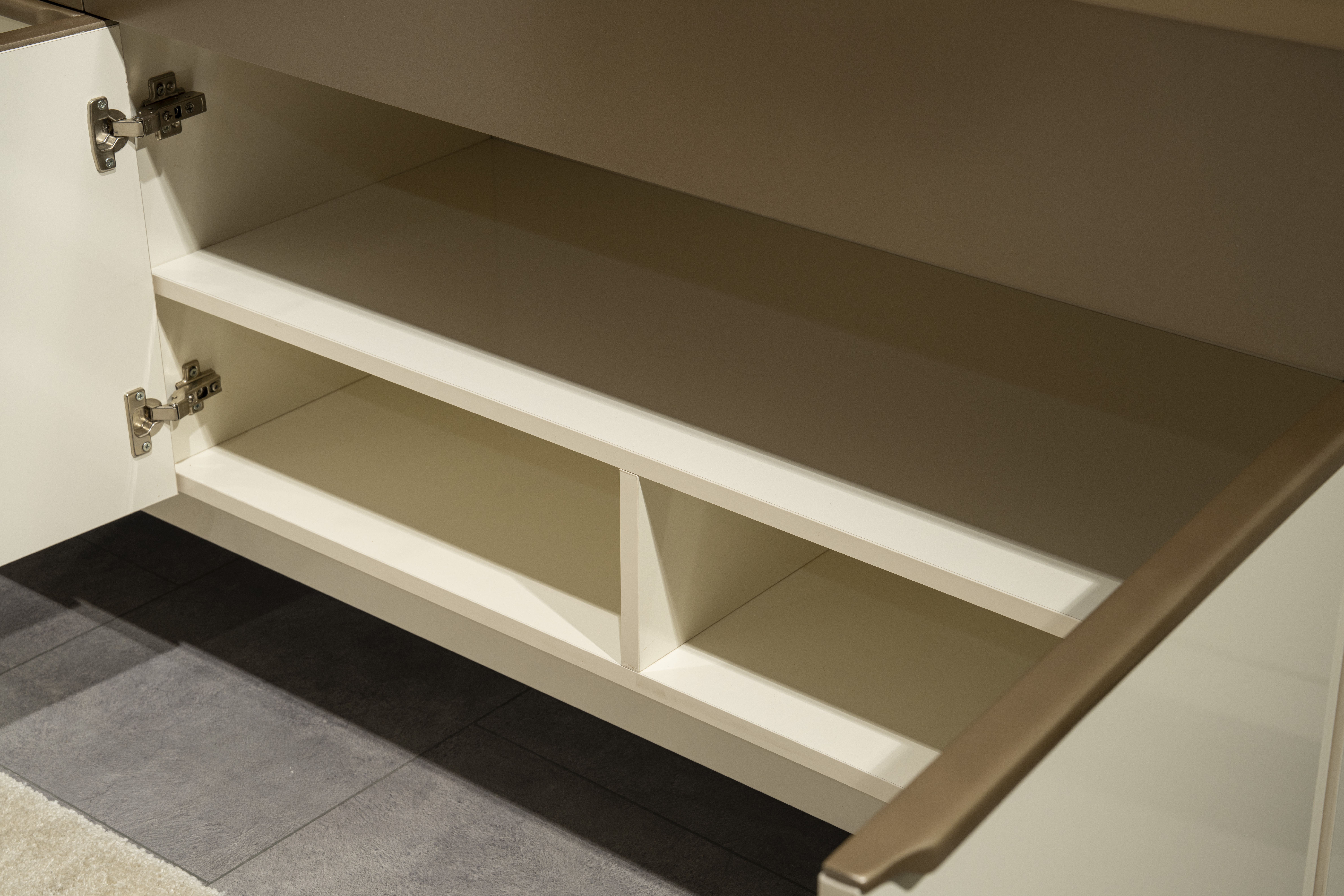 Dësen elegante Miwwelstéck ass net nëmmen en opteschen Highlight, mä och extrem funktionell. Mat groussem Stauraum ass et ideal fir d'Opbewahrung vun Geschir, Besteck an aneren Iesszëmmerutensilien. Dervu profitéierend, kreéiert de passend Spigel mat senge Moossen vun 68 cm x 91.2 cm zousätzlecht Liicht ewéi e Gefill vu Méiraum am ganzen Zëmmer. Zousätzlech kann d'Faarf no Wonsch ugepasst ginn, wat eng individuell Anpassung un Äert Dekor erméiglecht. Dës exklusiv Kichenanrichte ass eng perfekt Wiel fir déi, déi Wäert op héich Wäert a Kachen mat Stil a Komfort leeën.