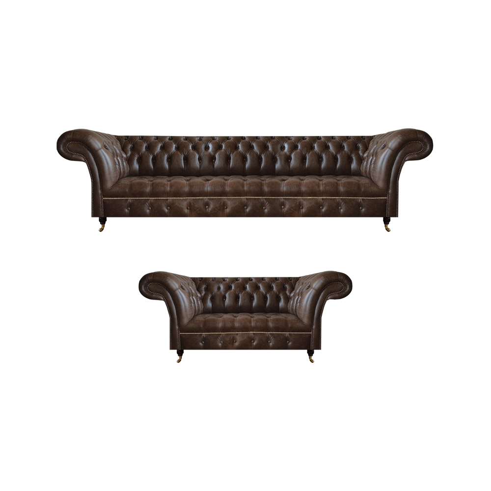 a Stil wéi dat méi grousst Sofa. Dëst Chesterfield-Sofa-Set ass net nëmmen e