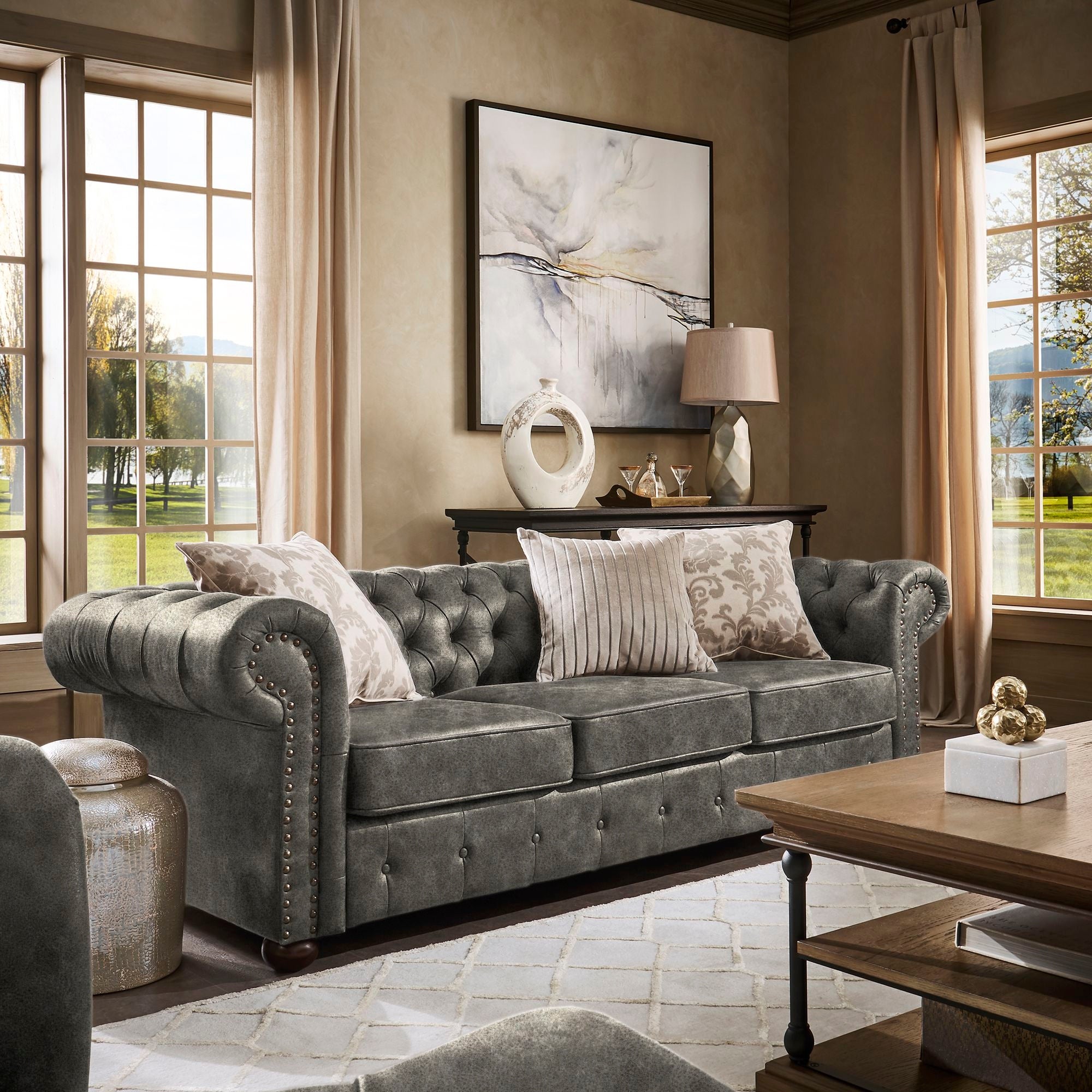 Chesterfield 3 Sëtzer Klassesch Luxus Barock Rokoko Canapé Textil Lieder Couch Nei