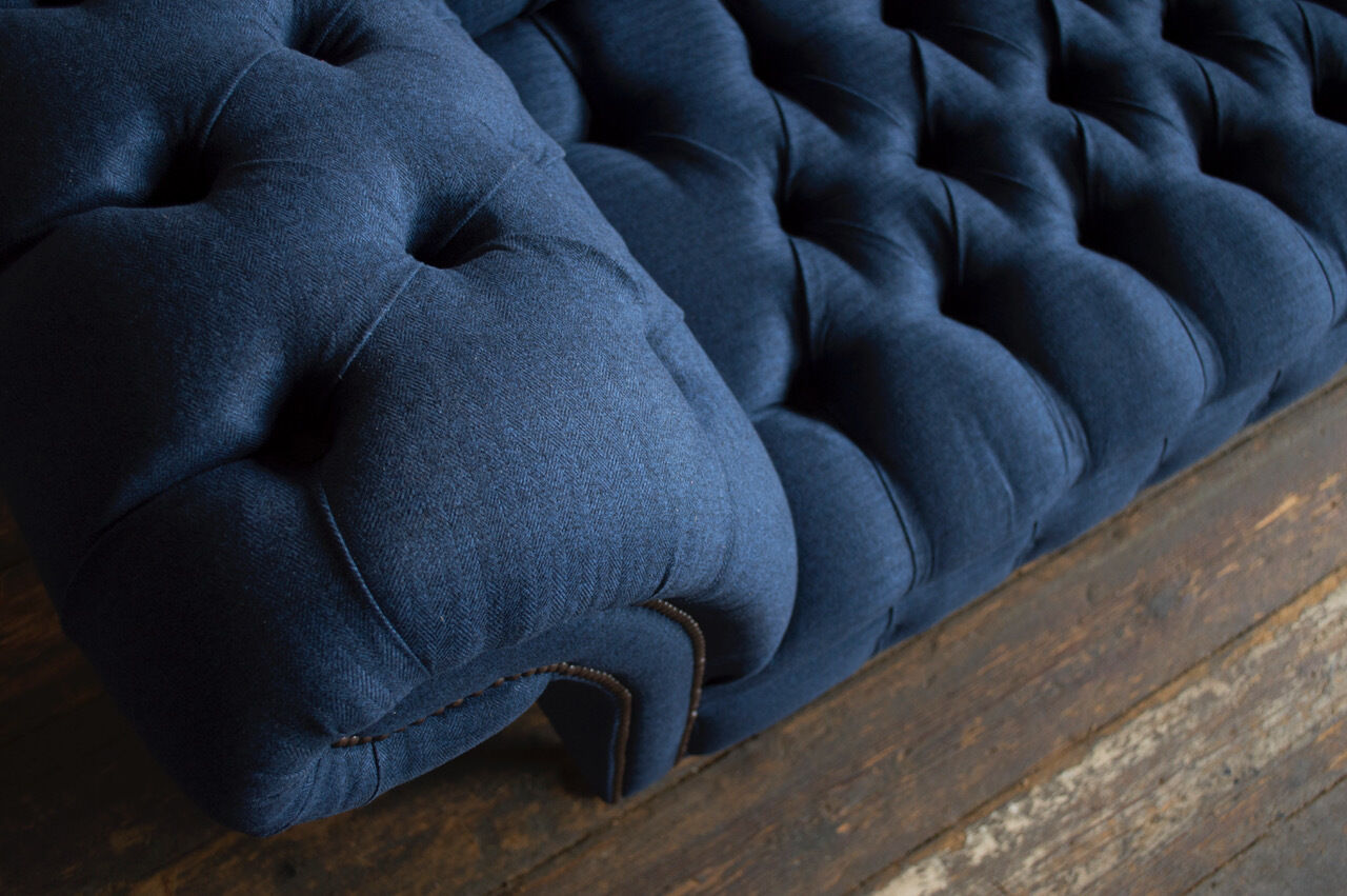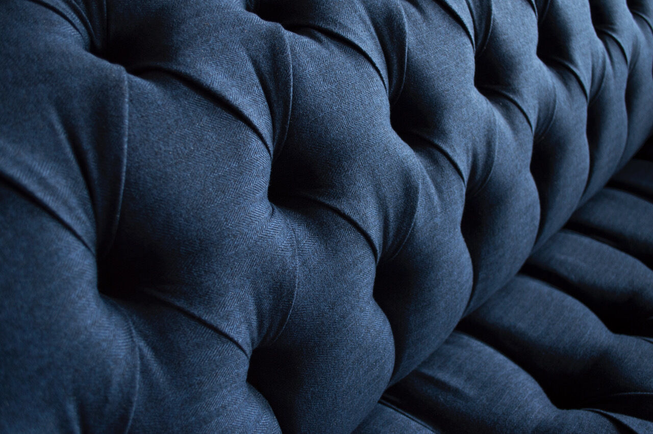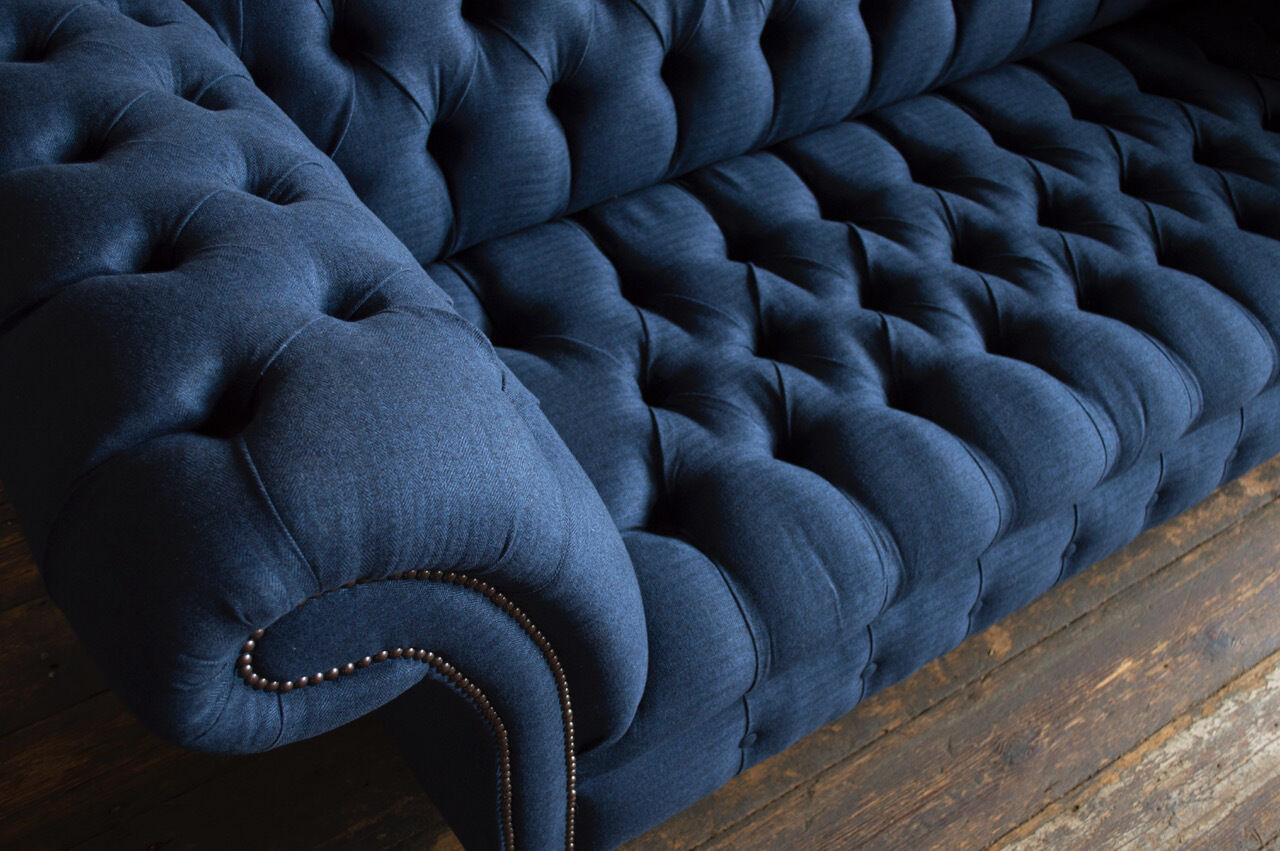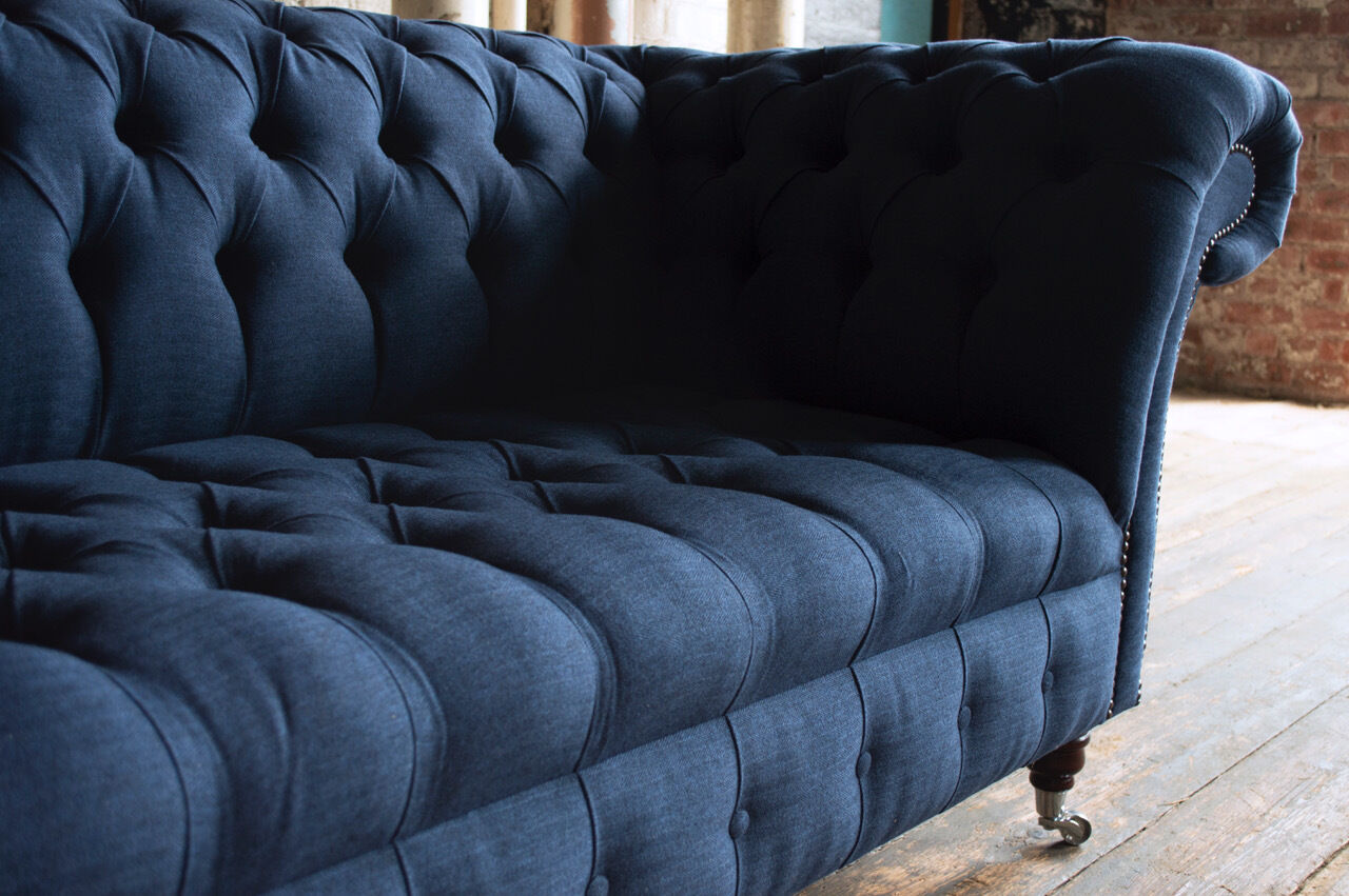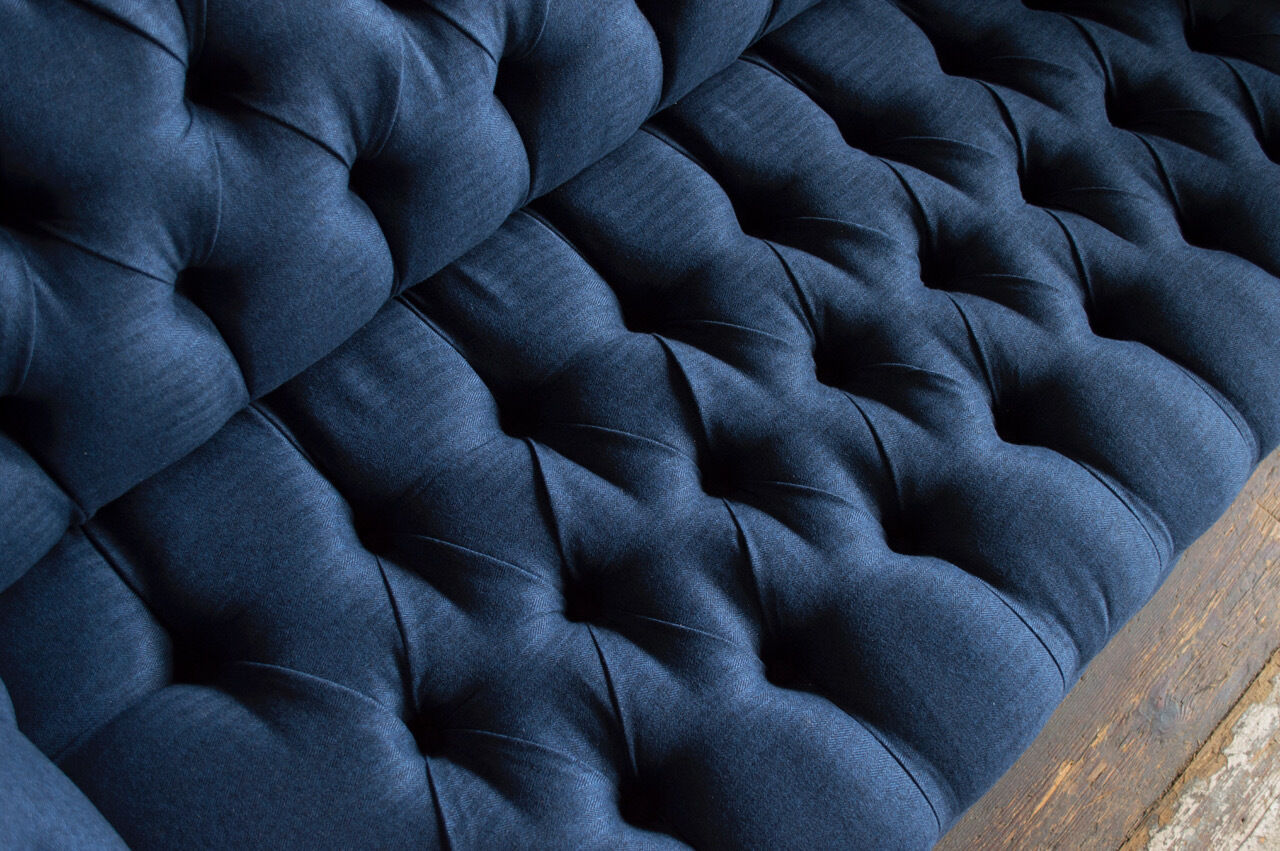 Chesterfield Couch Sëtz Textil Stoff Couchen Sofas Sofa Polster Samt 3 Sëtzer