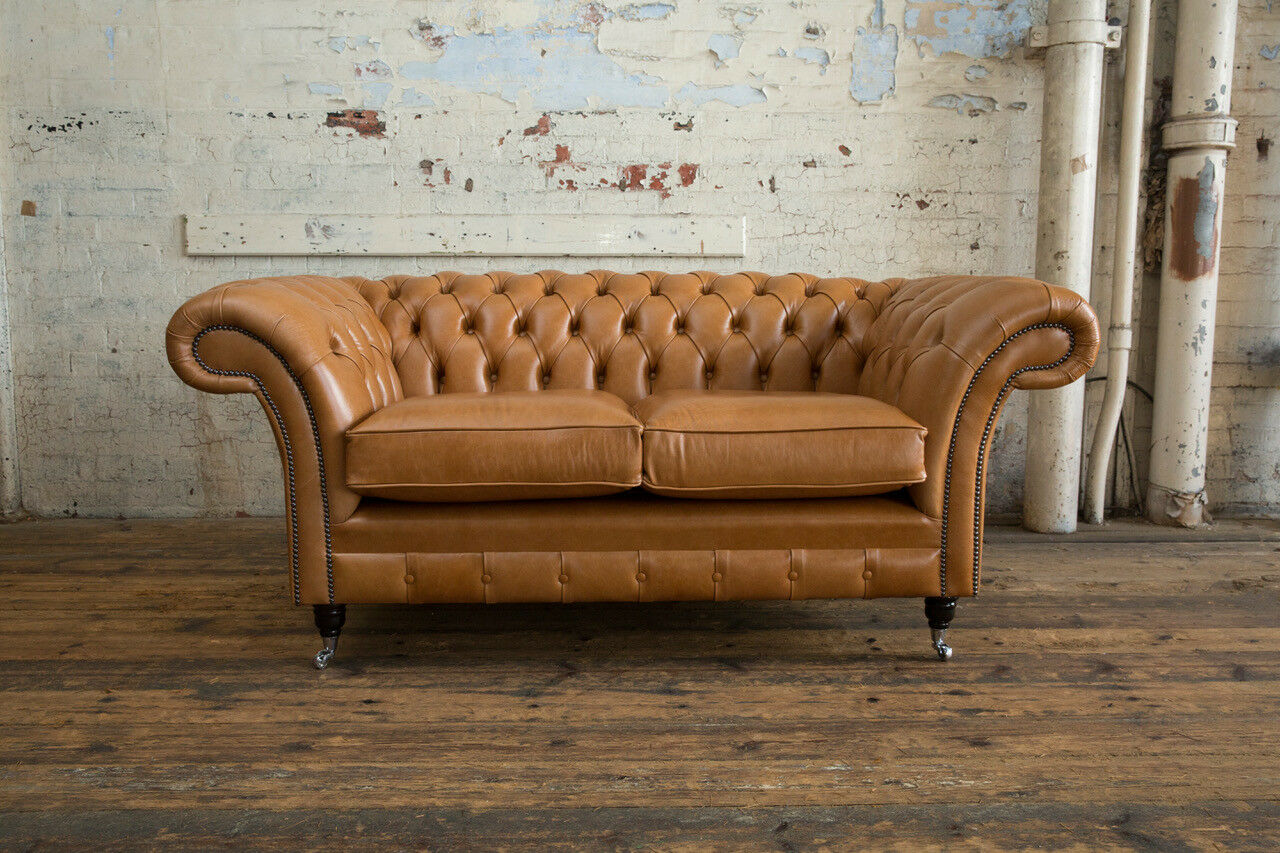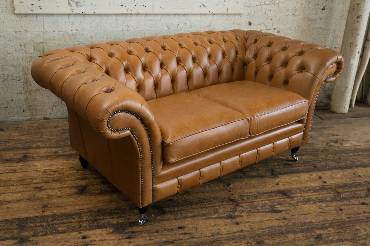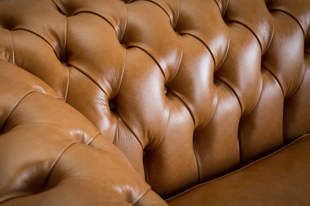 Erhief d'Designästhetik vun ärem Wunnraum mat der Chesterfield Design Luxus Polster Sofa Couch Sëtz Garnitur Lieder Textil Brong. Dës herrlech entworfte Couch, mat hirem impressionanten Chesterfield-Stil, veréint Klassik a Modernitéit op eng glanzvoll Manéier. Mat Moossen vun 185 x 98 x 79 cm, bitt dëst zwee Sëtz-Sofa genuch Plaz fir Komfort a Fräiheet. D'Faarfauswiel ass ganz un Iech iwwerlooss, sou datt Dir déi perfekt Faarf fir Ären Interieur fannen kënnt. D'Sitzfläch a Staangdicke ginn mat héichwäertegem Premium Konschtlieder ausgestatt, a kënnen no Wonsch mat 100% Vollleder ergänzt ginn fir eng zousätzlech Tax. Duerch seng Optioun Fleegeleichter Stoff oder Echtlieder ze wielen, kritt Dir d'Méiglechkeet, Är Investitioun laanglieweg ze gestalten.