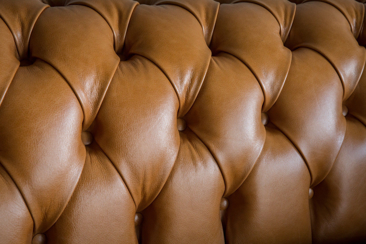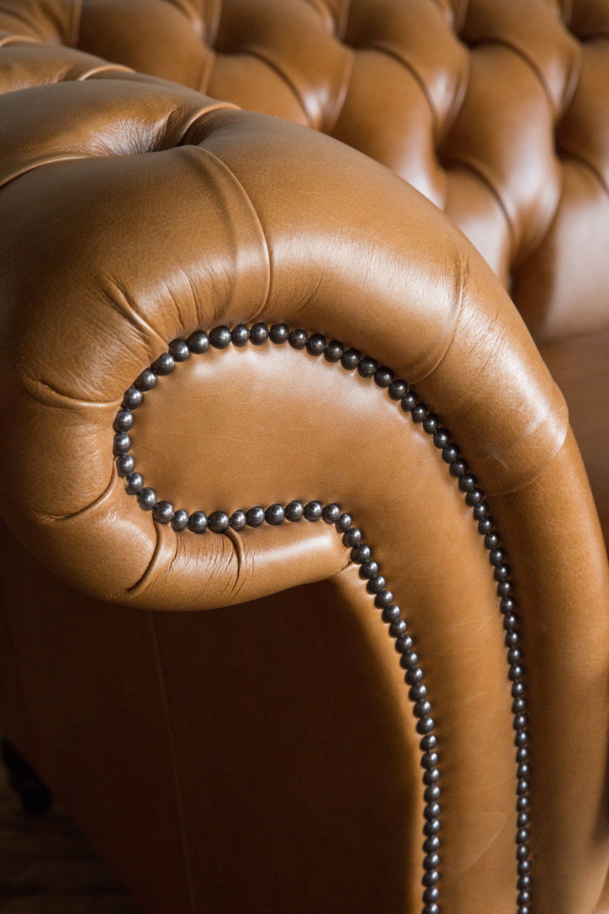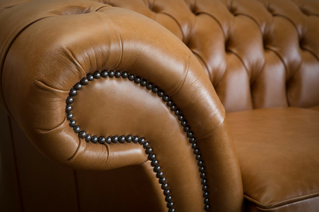 Chesterfield Design Luxus Polster Sofa Couch Sëtz Garnitur Lieder Textil Brong