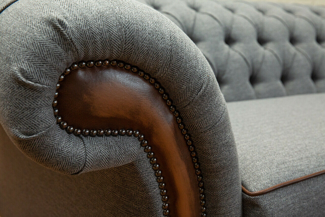 Chesterfield Design Stoff Couch Fauteuil 1,5 Sëtzer Polster Sofas Lounge Samt Gro