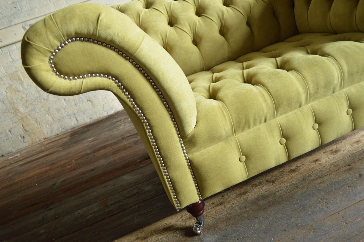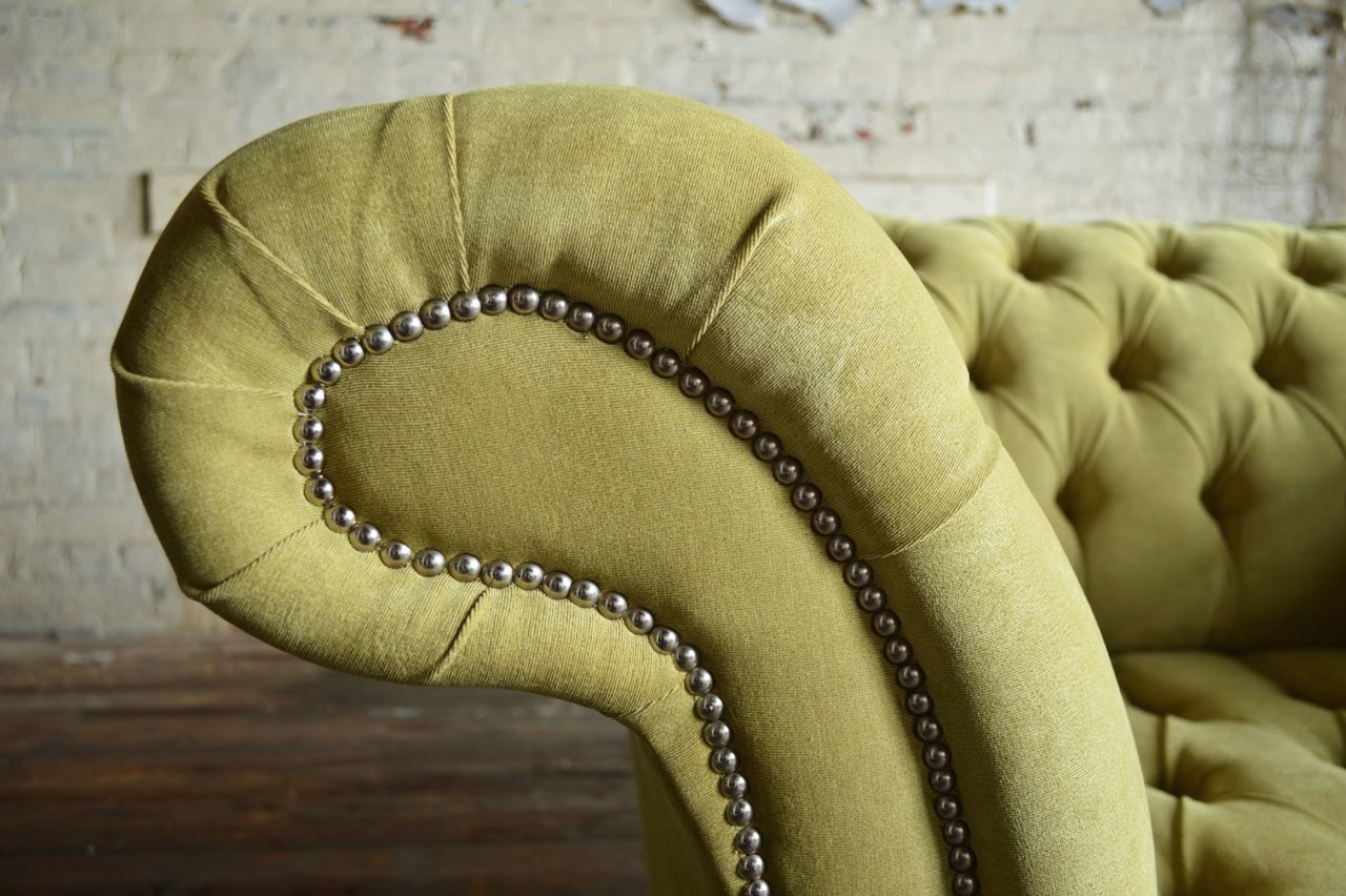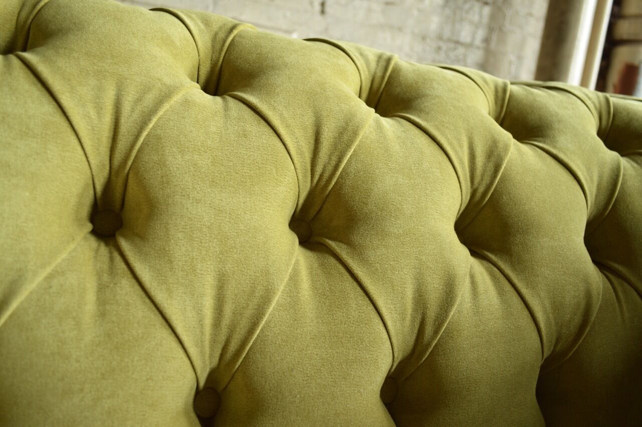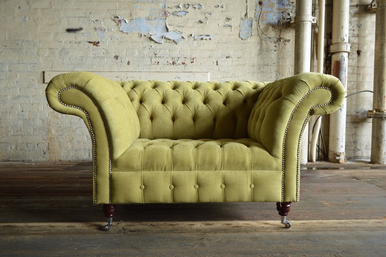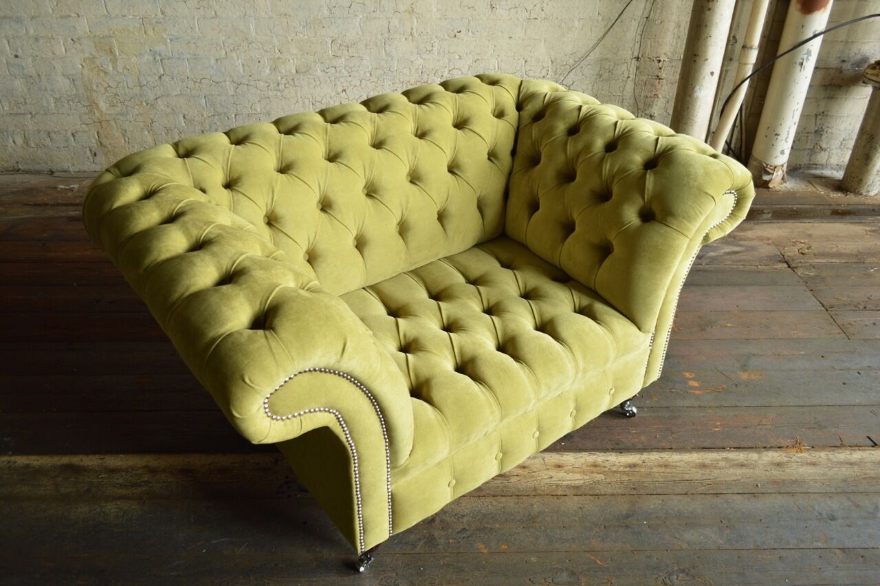 Chesterfield Design Stoff Canapé Fauteuil 1.5-Sëtzer Polster Sofa Lounge Samt Gréng