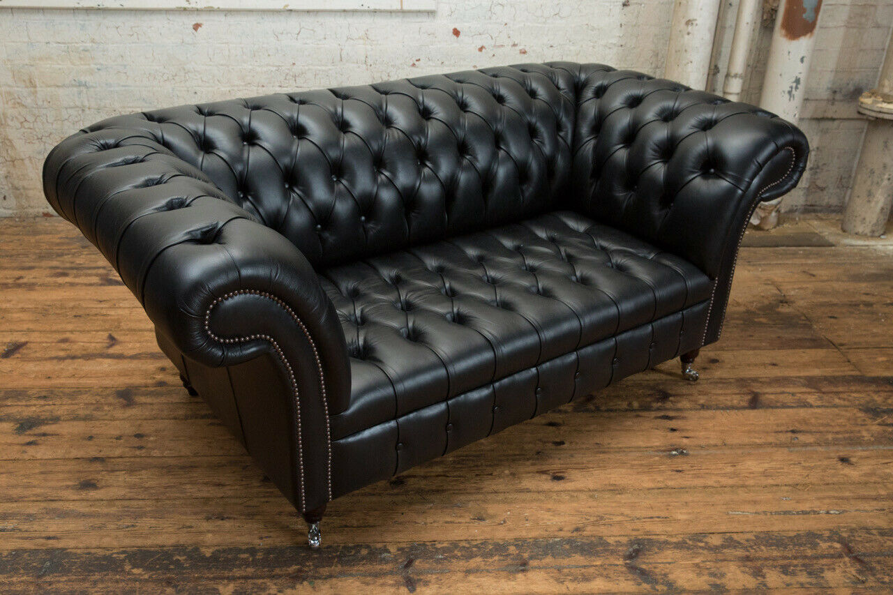 Den 'Chesterfield Original Sofa JVMoebel Couch Textil Sofas Couchen Stoff Schwaarz Nei' ass eng héichwäerteg Miwwelstéck dat Eleganz an Komfort matenee verbënnt. Dëse raffinéiert 2-Sëtzer huet Dimensiounen vun ca. 185 cm Längt, ca. 79 cm Héicht, an ca. 98 cm Déift. Et huet eng Sëtz Héicht vun 42 cm, perfekt fir en entspaanten Sëtzempfindung. Dir kënnt aus enger breeder Palett un Faarwen wielen, déi all ënner dem Reiter "Faarwen" ze fanne sinn. D'Sofa ass an Premium Konschtlieder entworf, mat der Méiglechkeet et an Echtleder ze upgraden fir e luxuriéise Finish. D'Konstruktioun beinhalt en innere Kader aus echtem Holz an en robusten FEDERKERN fir optimalen Support a Liewensdauer.