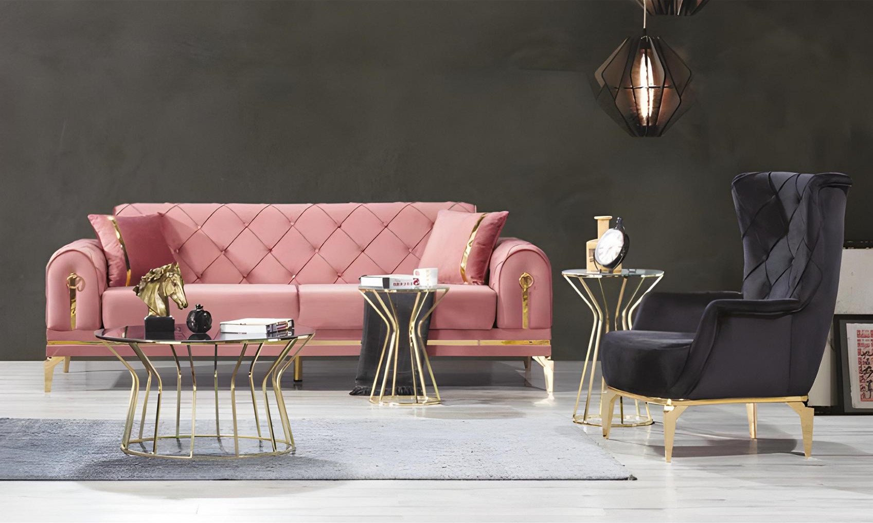 An engem modernen rosa Chesterfield-Design gehalen, verleiht dëst Miwwelstéck all Raum eng luxuriéis an zäitgeméiss Atmosphär.EAN:4067282801318