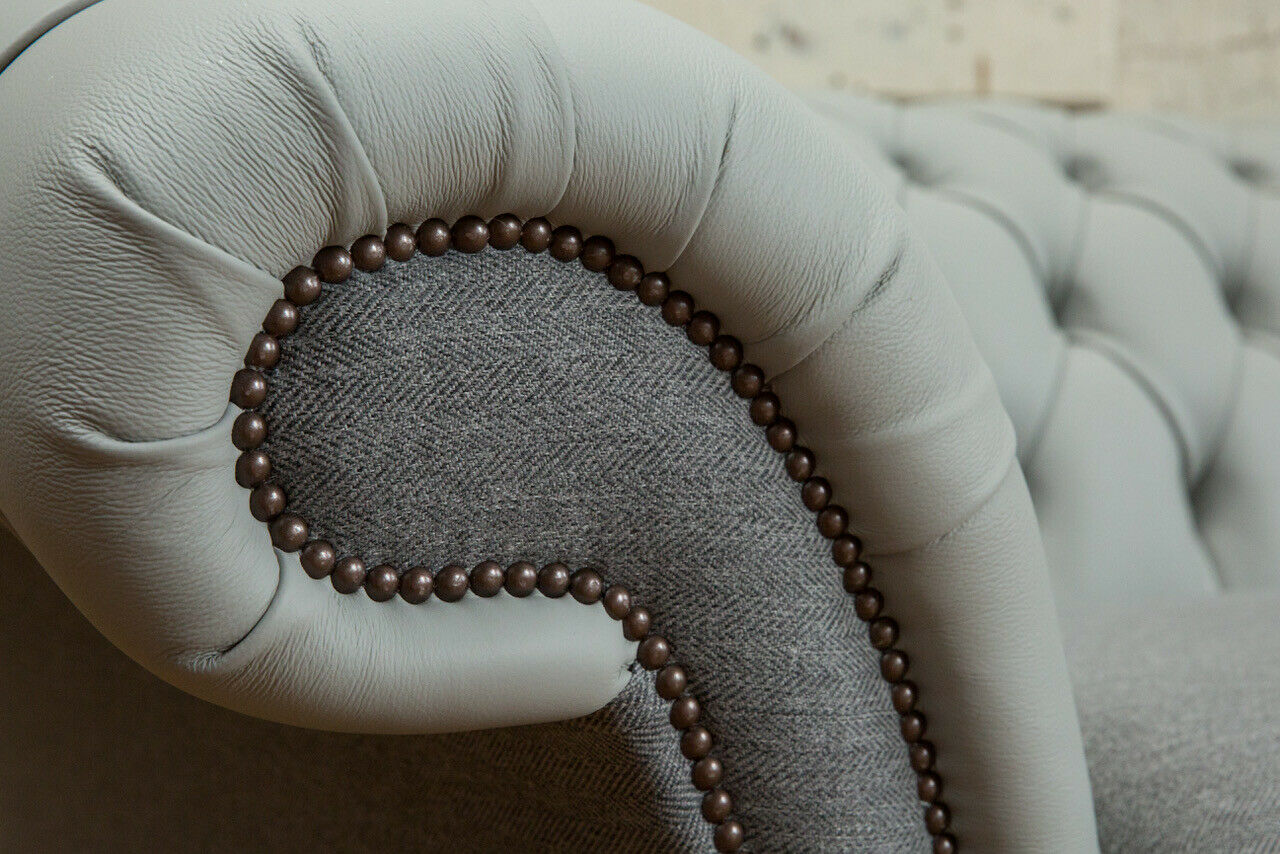 Den 'Chesterfield Canapé 3 Sëtzer Couch Sofas Couchen Wunnzëmmer Design Canapé Gro Neu' ass eng elegant a stilvoll Ergänzung fir all Wunnzëmmer. Des Canapé ass aus Premium Kënschtläder hiergestallt a bitt eng fräi Faarfwahl. Mat enger Gréisst vun ongeféier 225 cm Längt, 98 cm Déift, a 79 cm Héicht, bitt se genuch Raum fir dräi Persounen, während déi ergonomesch Sëtz Héicht vu 42 cm a Sëtzdéift vun 64 cm e komfortabelt Sëtzerfarung garantéieren. D'Gesamtkonstruktioun beinhalt e robusten, echtem Holzrahmen, deen d'Haltbarkeet erméiglecht, begleet vun enger Federskären Fiedersystem, wat weider Komfort bitt. Dés Couch kann och mat speziellen Optiounen wéi Swarovski Kristallsteen dekoréiert ginn, fir en extra Touch vu Luxuriéit.