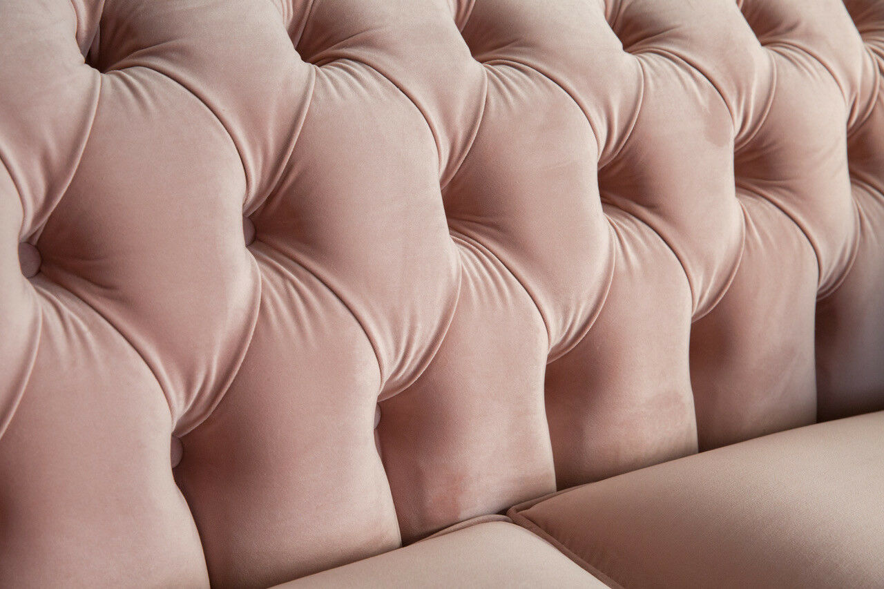 Erhéijen Är Wunnraim mat der Klassesch Couch Chesterfield Still, Textil Lieder Stoff Samt Zwéesëtzert, eng exquisit Mëschung aus Eleganz an Komfort. Dës zweetstehend Couch ass lackéiert an engem raffinéiertem Design, deen bekannte Chesterfield-Charakteristiken wéi d’quiltéiert Armlehnen a ronnen Forme betount. Mat de Moossen vun 185 x 98 x 79 cm ass si ideal fir méi klein oder medium Salonen, wou Plaz an Eleganz gläichberechtegt erwënscht sinn. Wielt aus enger Rei vu qualitativ héichwäertegen Materialien, darënner Premium Konschtlieder oder, géint e klengen Zouschlag, Premium Echtlieder, fir e besonneschen Flair un Äert Interieur ze vermëttelen.