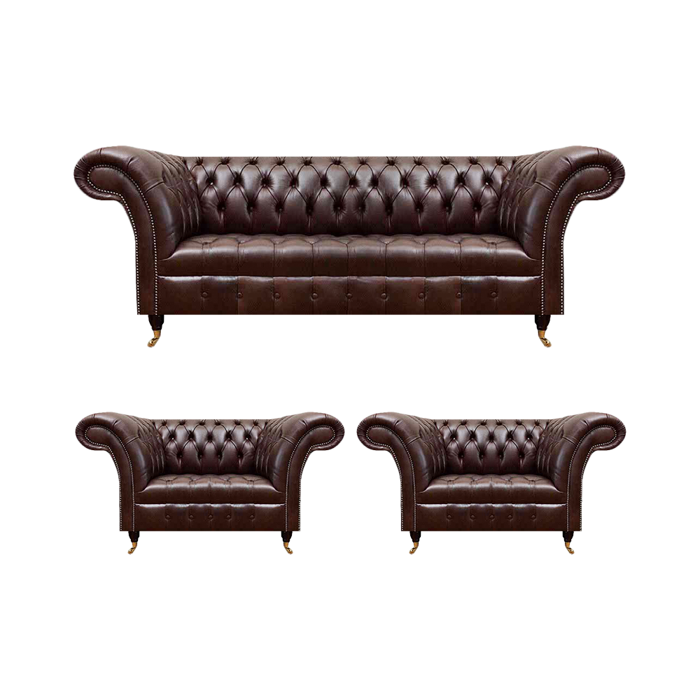 Luxus brong Chesterfield Liederemöbel Designer Dräisëtzer 2x Still 3 Stéck.