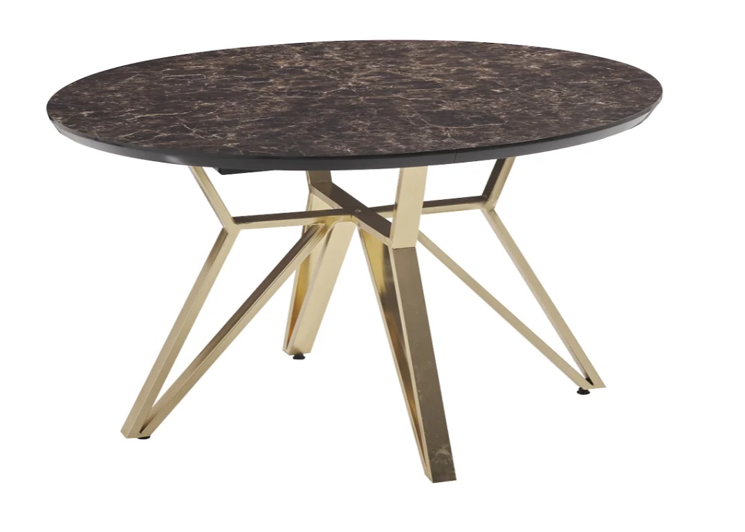 Den Luxus Iessdësch Iesszëmmer Dësch ass en elegant Stéck mat engem modernen Design, dat Perfektioun an all Ariichtung bréngt. Mat enger Gréisst vun entweder ø 120 x 77 cm oder ø 140 x 77 cm bitt dësen Dësch genuch Plaz fir bequem Iessen mat der Famill oder Frënn. Dësen iessdësch ass aus héichwäertegem MDF fir d'Dëschplack an elegante Been aus Edelstol gemaach, wat e stabile Still a laang Dauer garantéiert. Hosiicht op d'Schéinheet an d'Prakteschkeet ass et an enger stilvoller Brong Faarf verfügbar, mat Optiounen fir aner Faarwen op Ufro. Fir méi Flexibilitéit beim Iessen ze bidden, kann den Dësch vun 120 cm op 160 cm respektiv 140 cm op 180 cm auszéibar ginn, bannt där et déi perfekt Léisung ass fir verschidde Gréisste vun Versammlungen.