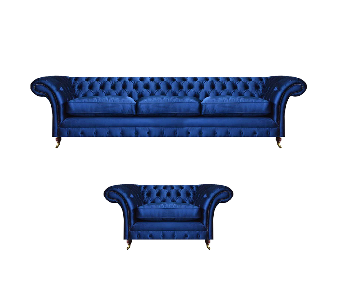 Luxus Sëtzmiwwelen Sofa Set 2tlg Sofa Dräisëtzer Canapé mat Fauteuil Chesterfield Neu