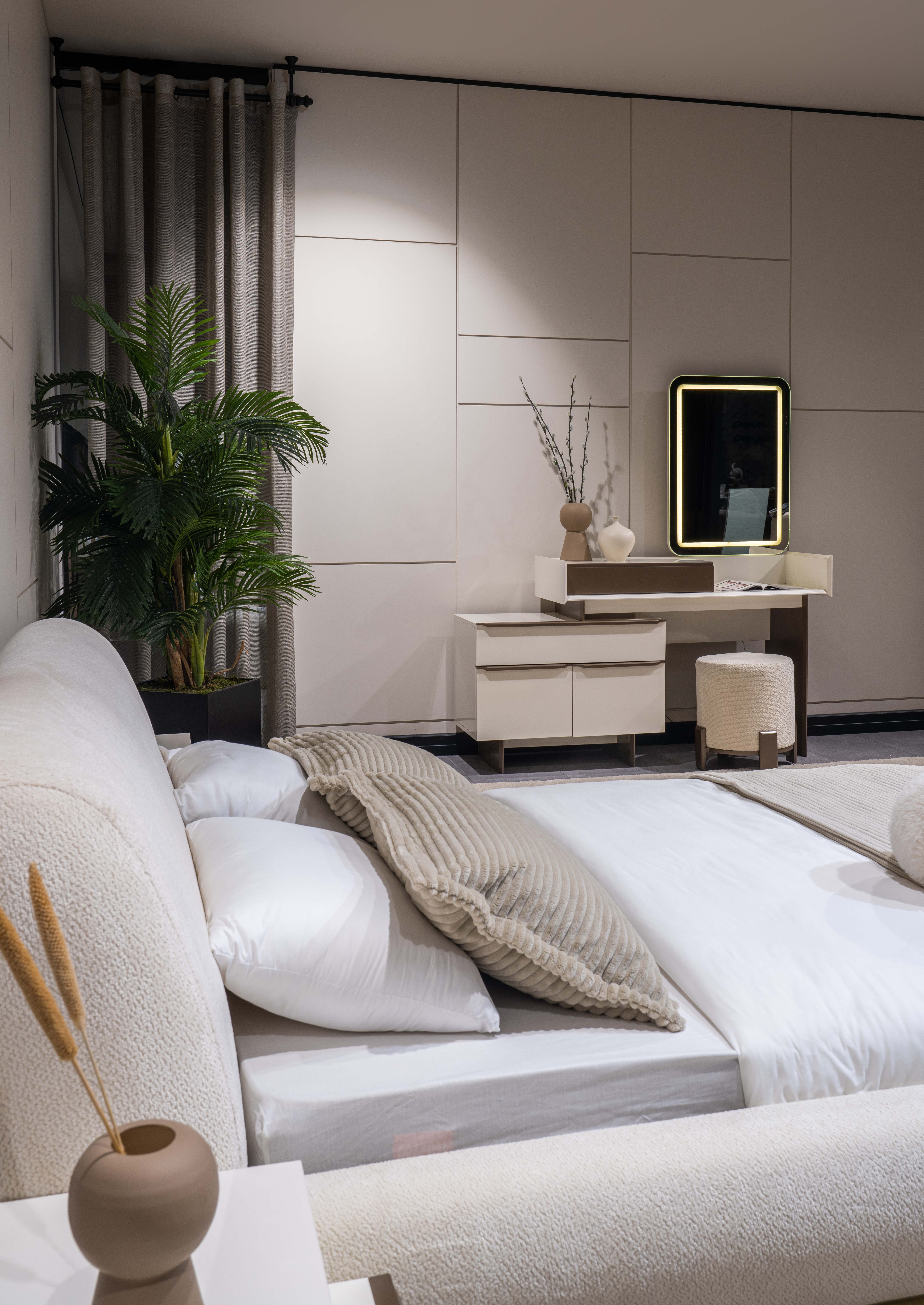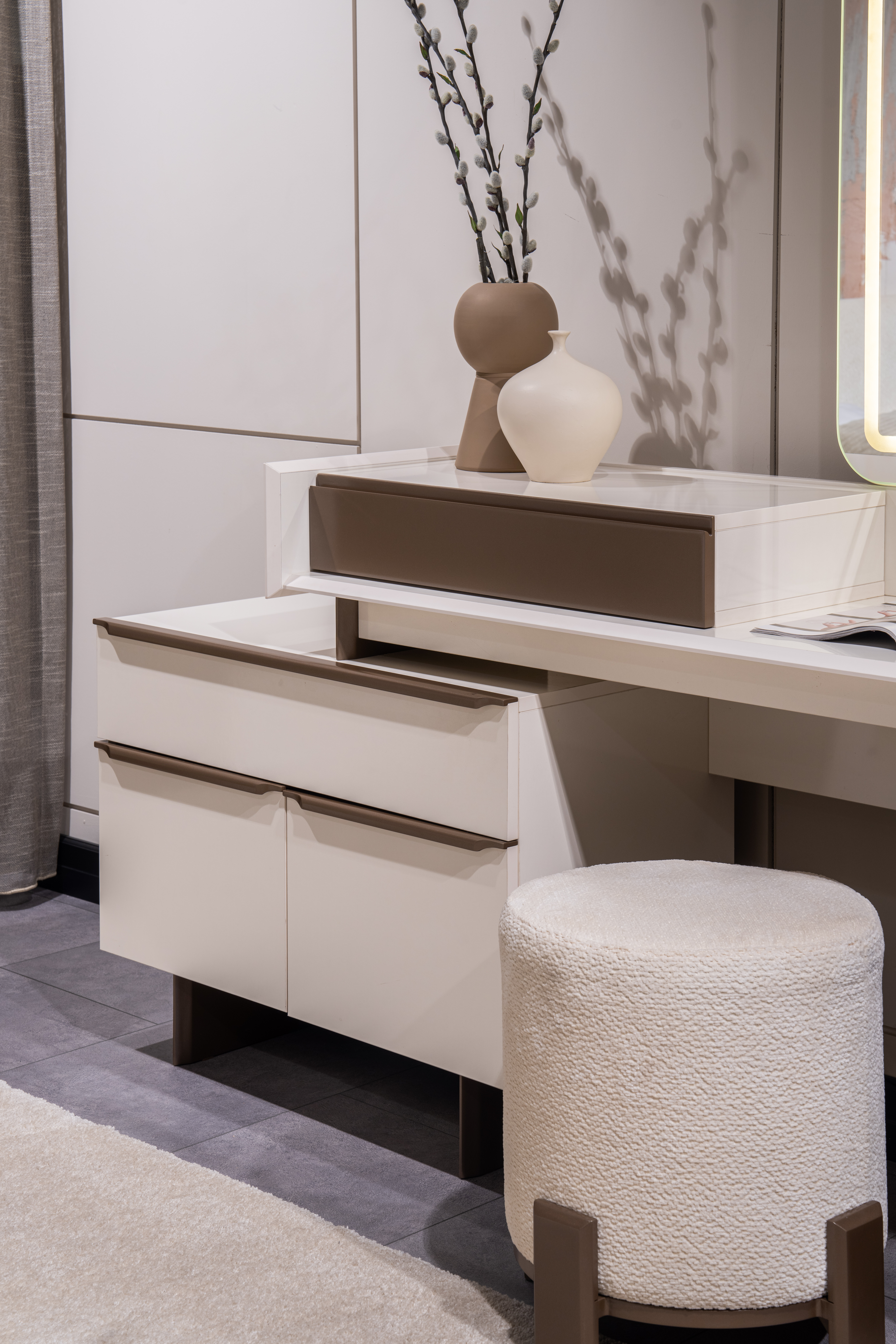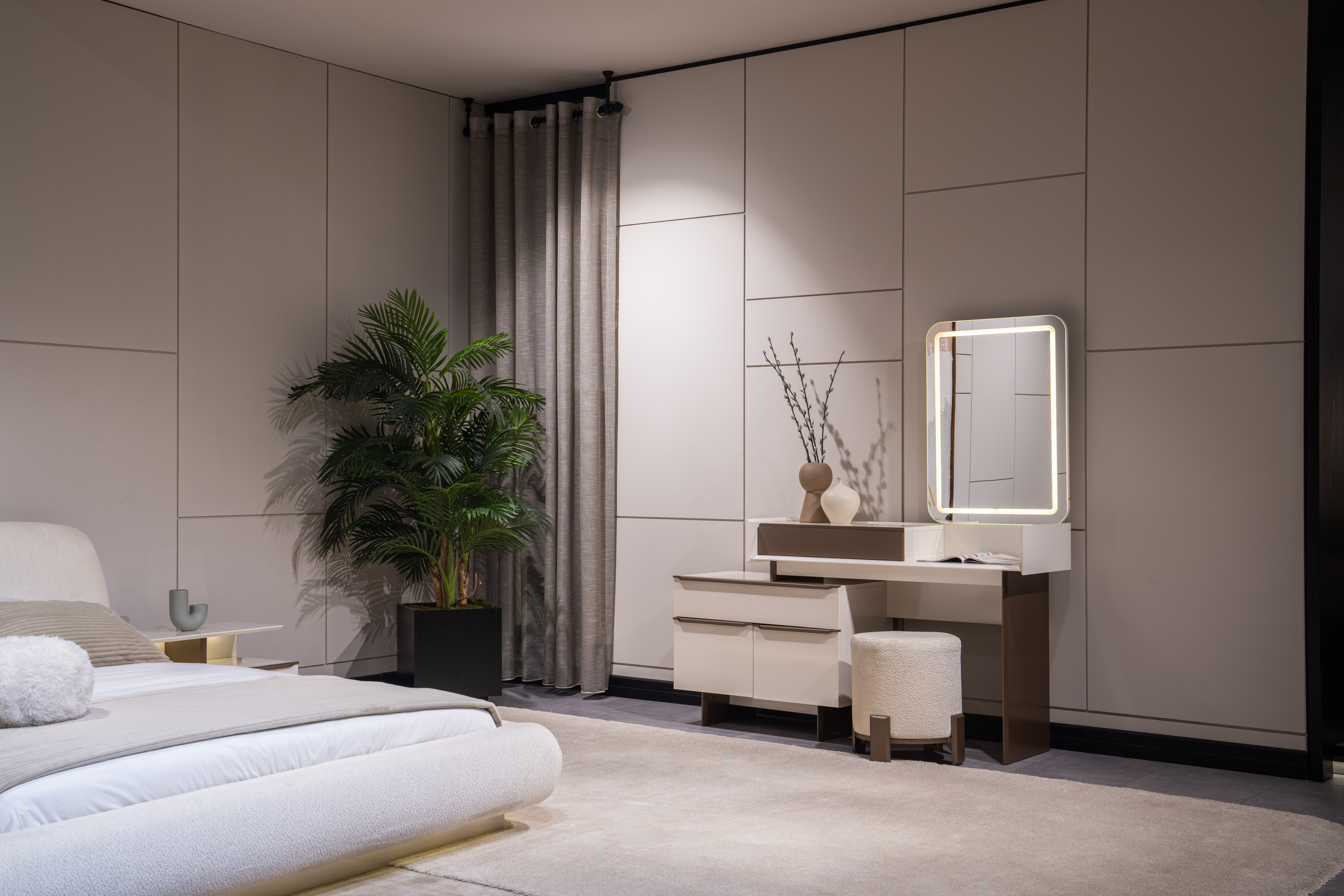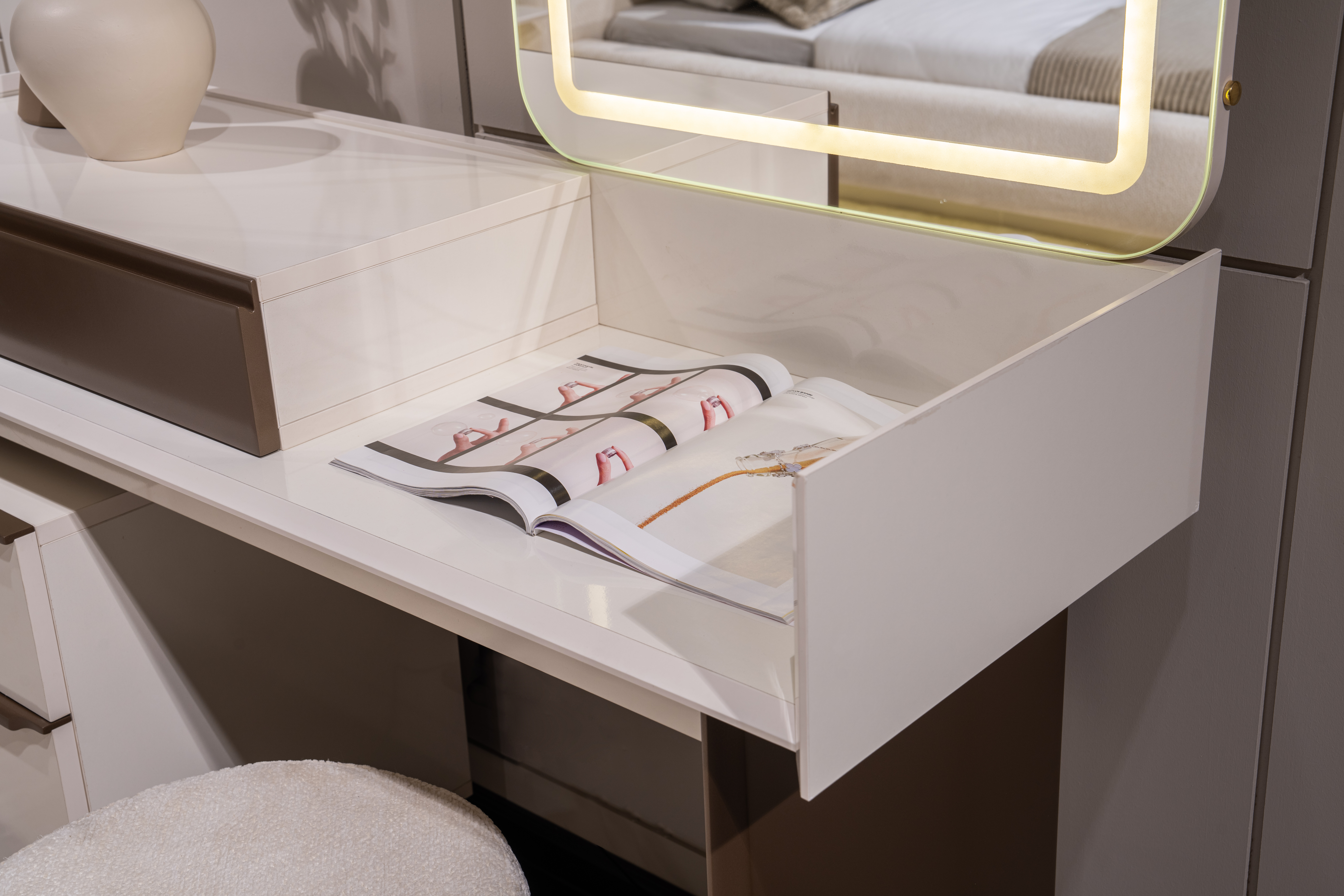 Modern Schlofzëmmer Miwwelen Edelen Kosmetiksdësch Gepolsterten Hocker Spigel