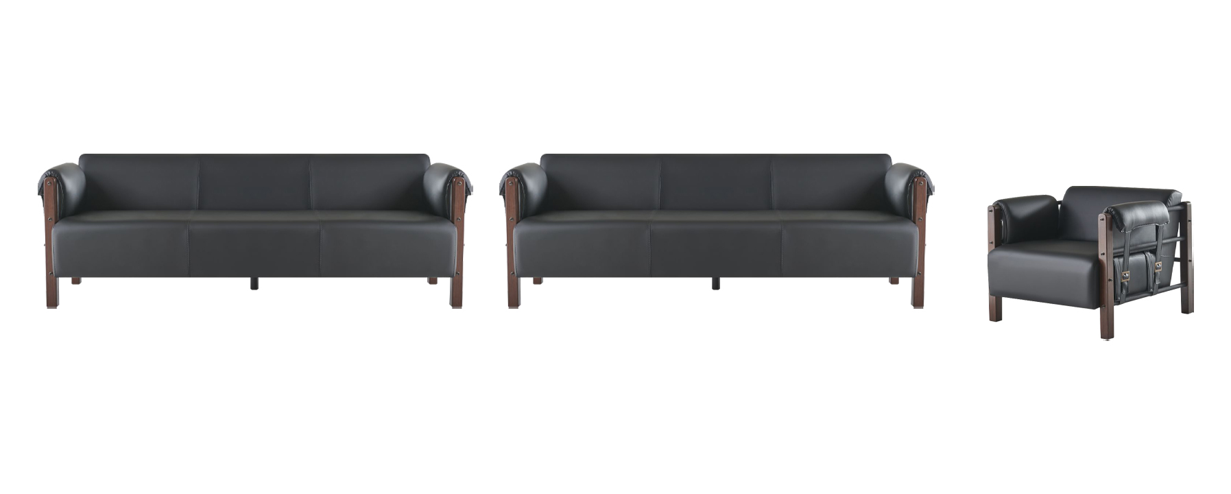Sofagarnituren Sofa-Set 3-Sëtzer Stillbësch Schwarz Holz Sofas Ledersofas