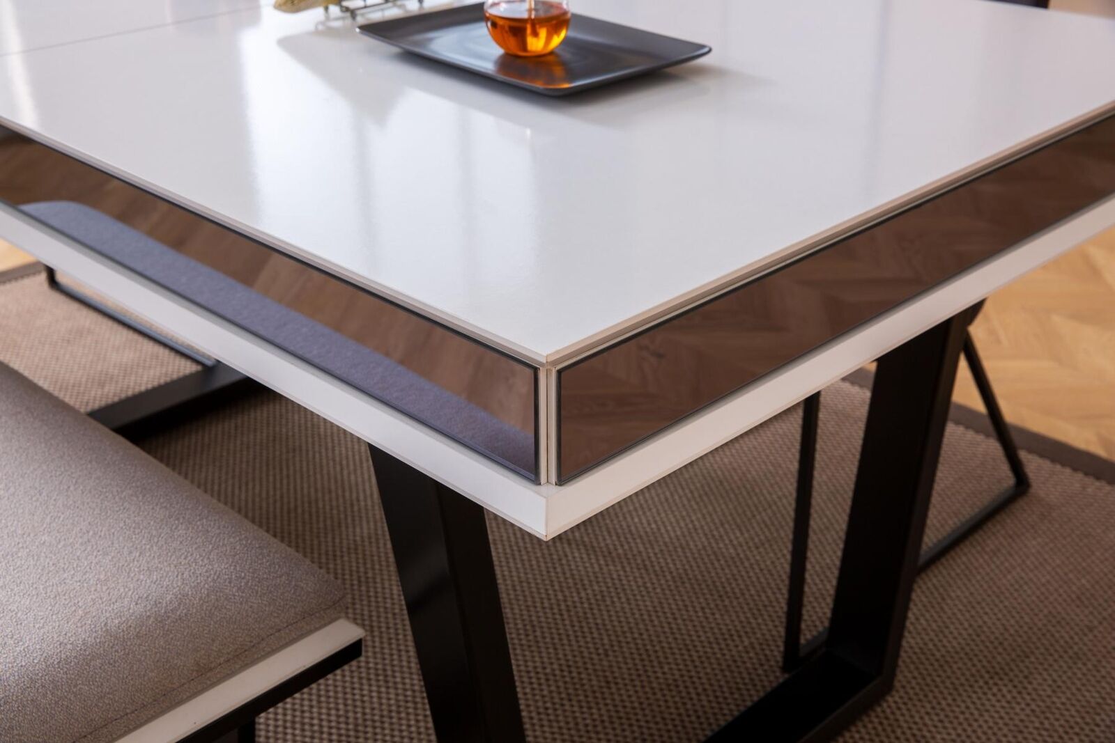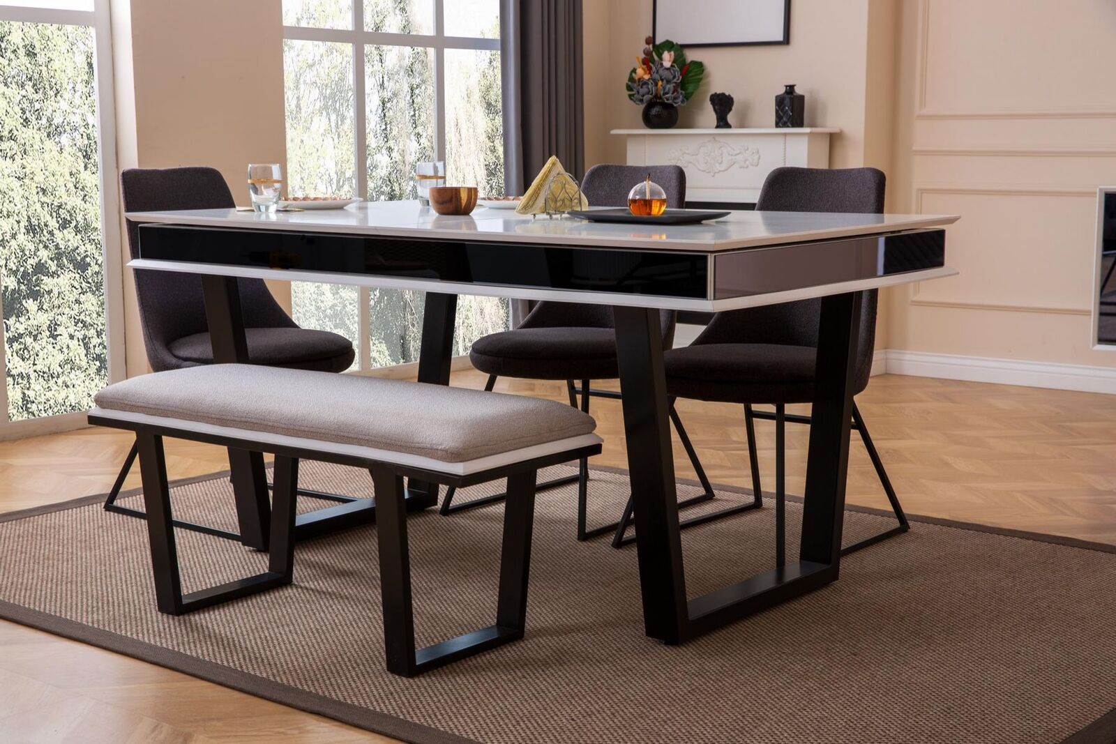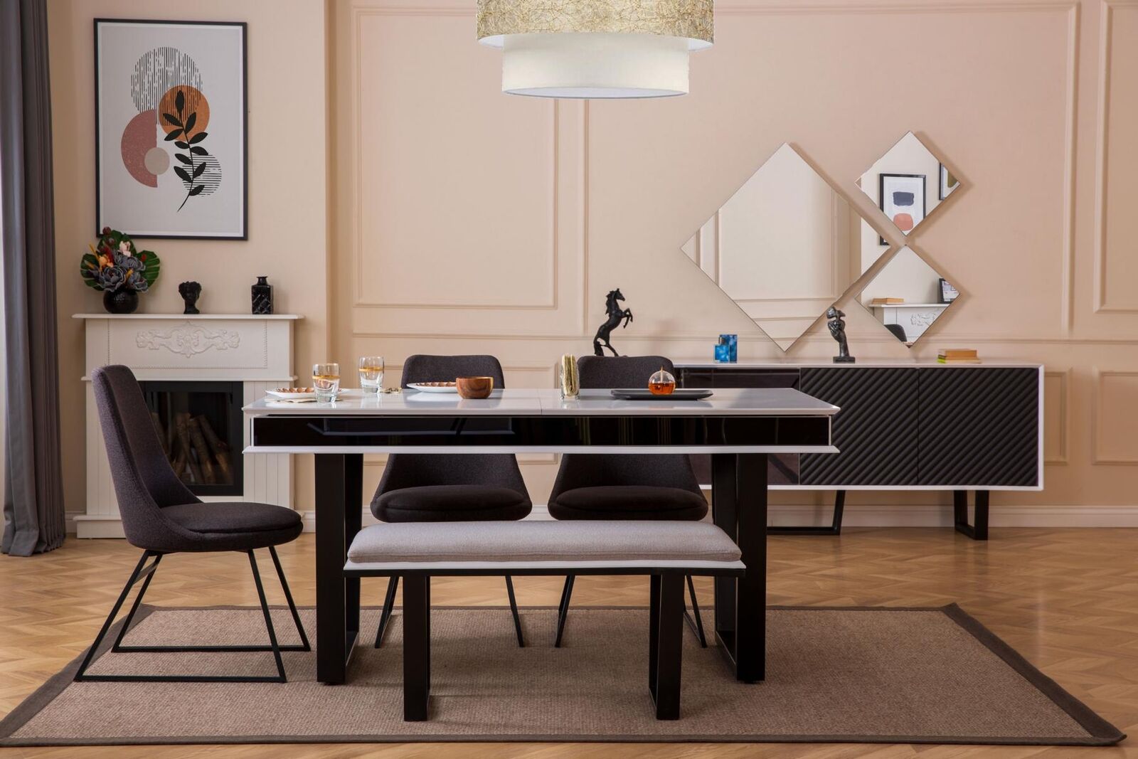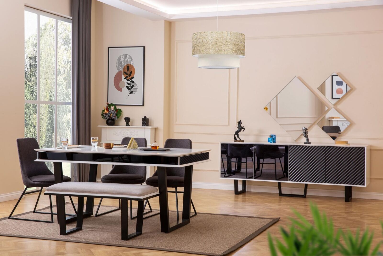 D'Anpassungsfäegkeet vun dësem Set erméiglecht et mat anere Faarwen personaliséiert ze ginn, an domat fir all typesche Stiler ze passen. D'inkludéiert dräi Spigelen bidden eng extra Dimensioun, erhéijen d'Liicht an de Reseau vum Raum. Dëst Miwwelset ass perfekt fir Formell a Casual Versammlungen a bitt eng stilvoll Atmosphär wärend et praktesch Funktionalitéit ubitt. Ob et esou ass datt Dir eng elegant Owesiessen Party organiséiert oder en ausgeglachene Raum fir alldeeglech Moolzechten wëllt, eisen Iesszëmmer Set garantéiert dass Äert Heem ëmmer perfekt ass fir Gäscht z'empfänken.