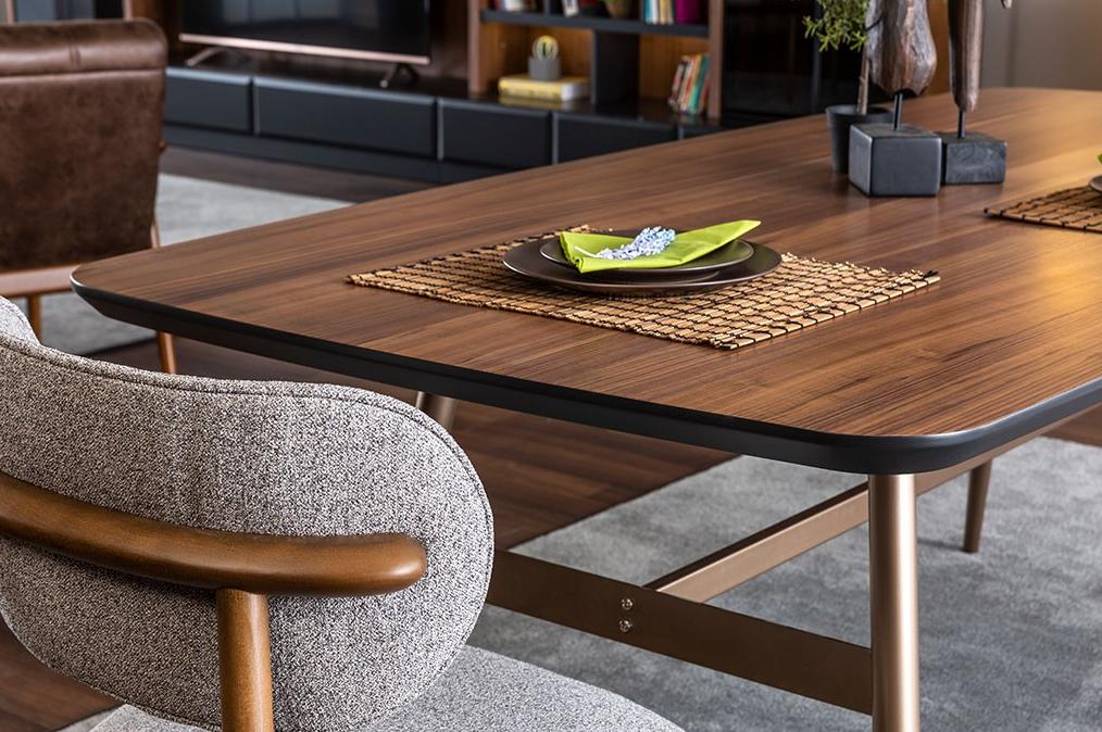 Dëse Luxusdësch, mat senger schéiner wéi Faarf, ergänzt all Interieur mat engem waarmen an invitante Touch. Ideal net nëmme fir alldeeglechen Gebrauch, mä och fir spezifesch Occasiounen wéi Fester an Empfäng. De stabile Bau garantéiert Haltbarkeet a laangjäreg Zefriddenheet, während d'einfach Pflege vum Material sécherstellt, datt de Dësch seng eleganten Ausgesinn behält. Mat dësem Dësch kann all Iesszëmmer oder Iesseck an en raffinéiertem Raum verwandelt ginn, deen e Gefill vu Wuelbefannen an Zesummenhang fördert.